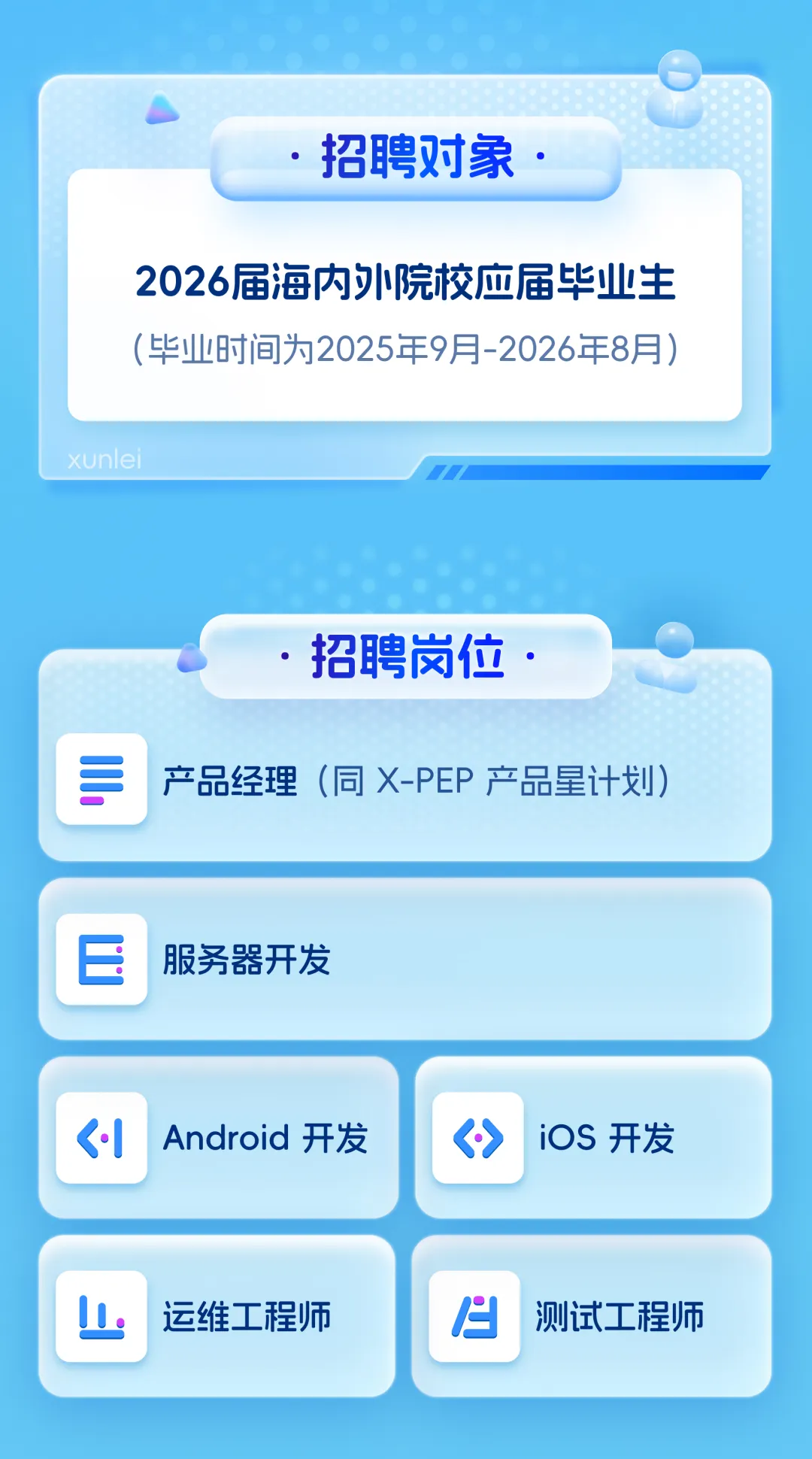 当前位置:首页>应届生招聘>迅雷2026春季校园招聘正式启动!