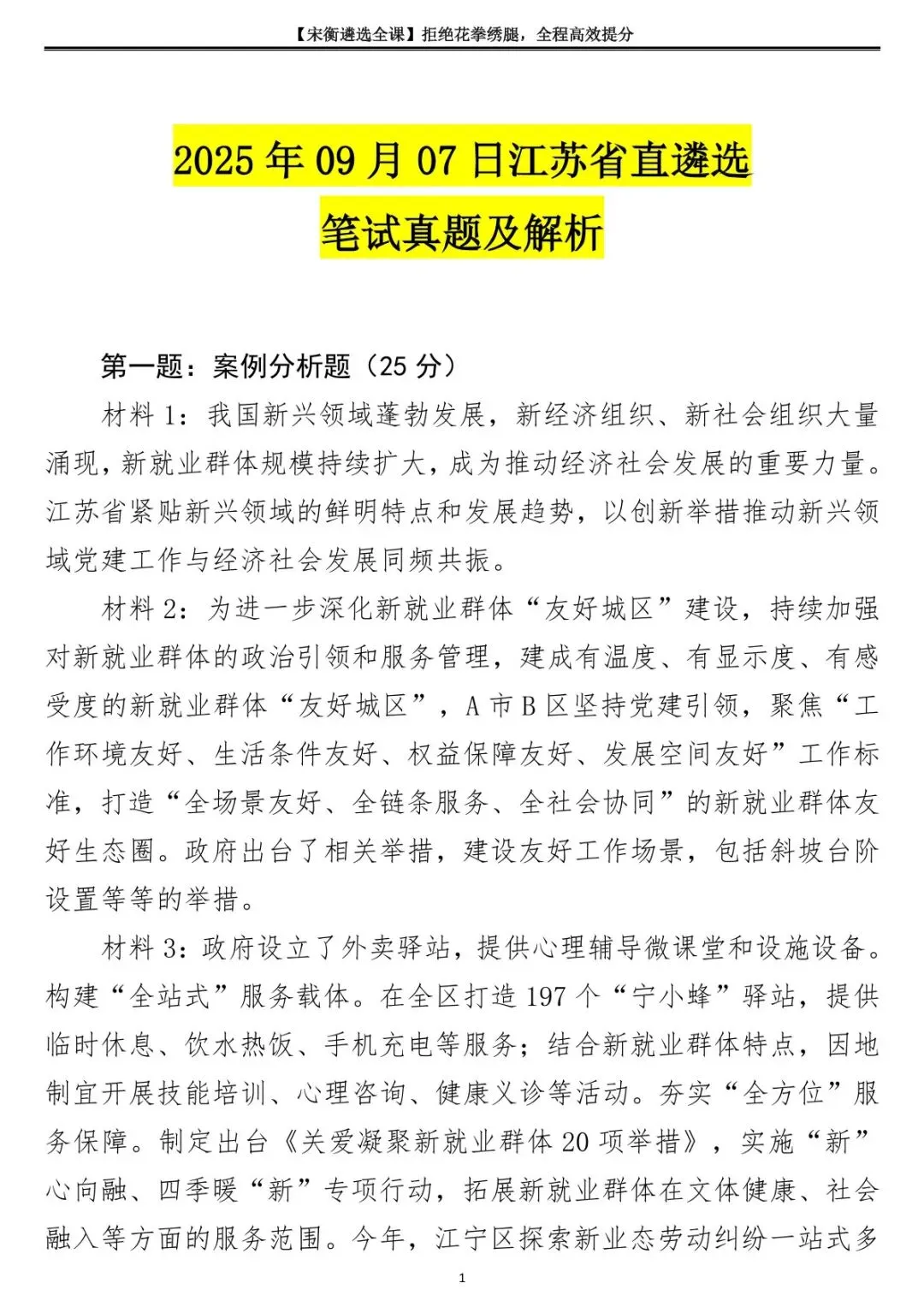 2025年09月07日江苏省直遴选笔试真题及解析