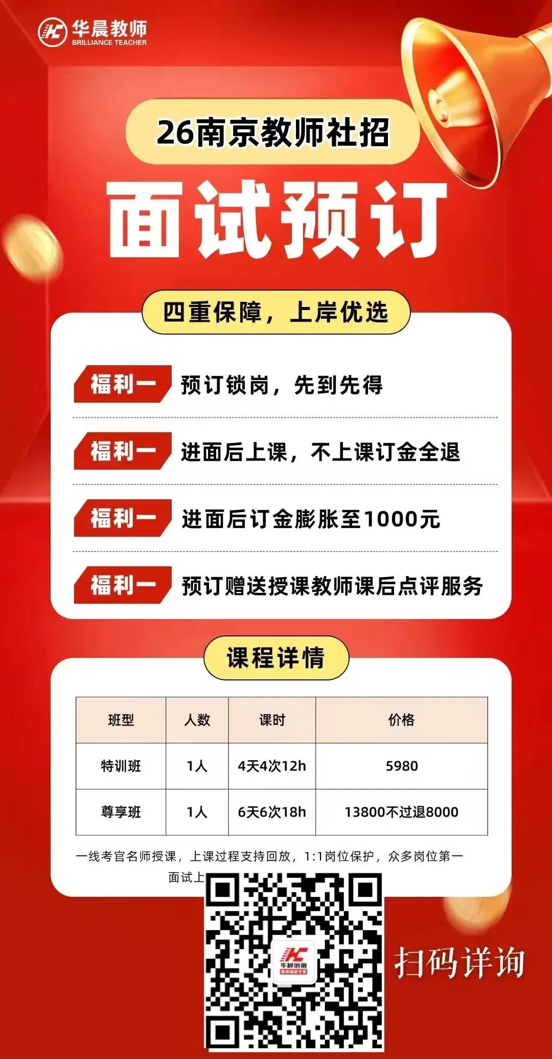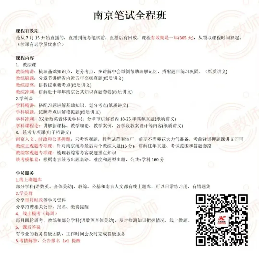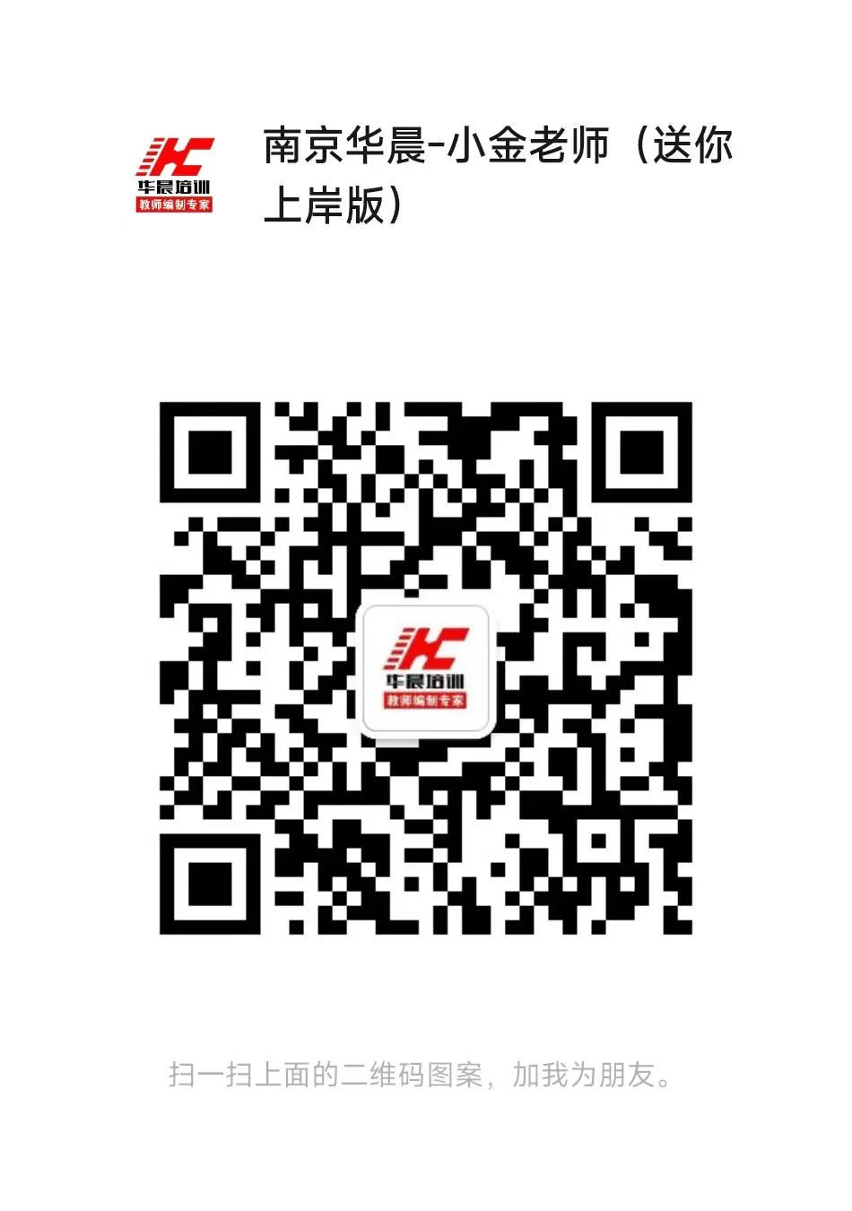 咨询南京教师编制考情,获取校招/社招备考建议,了解华晨教师培训考编课程,请加微信:13182870369