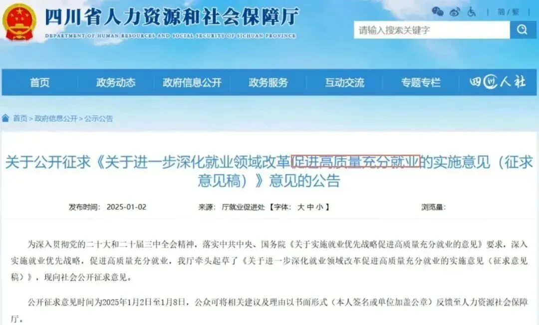 四川省人社厅25年1月发布的《征求意见稿》明确要求,取消应届高校毕业生身份认定限制,调整机关公招年龄上限;支持事业单位适当放宽招聘年龄条件;鼓励企业放宽用工年龄限制。