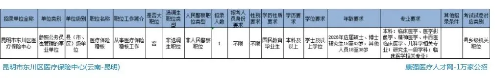 当前位置:首页>应届生招聘>【应届生】昆明市东川区医疗保险中心招聘公告,本科起