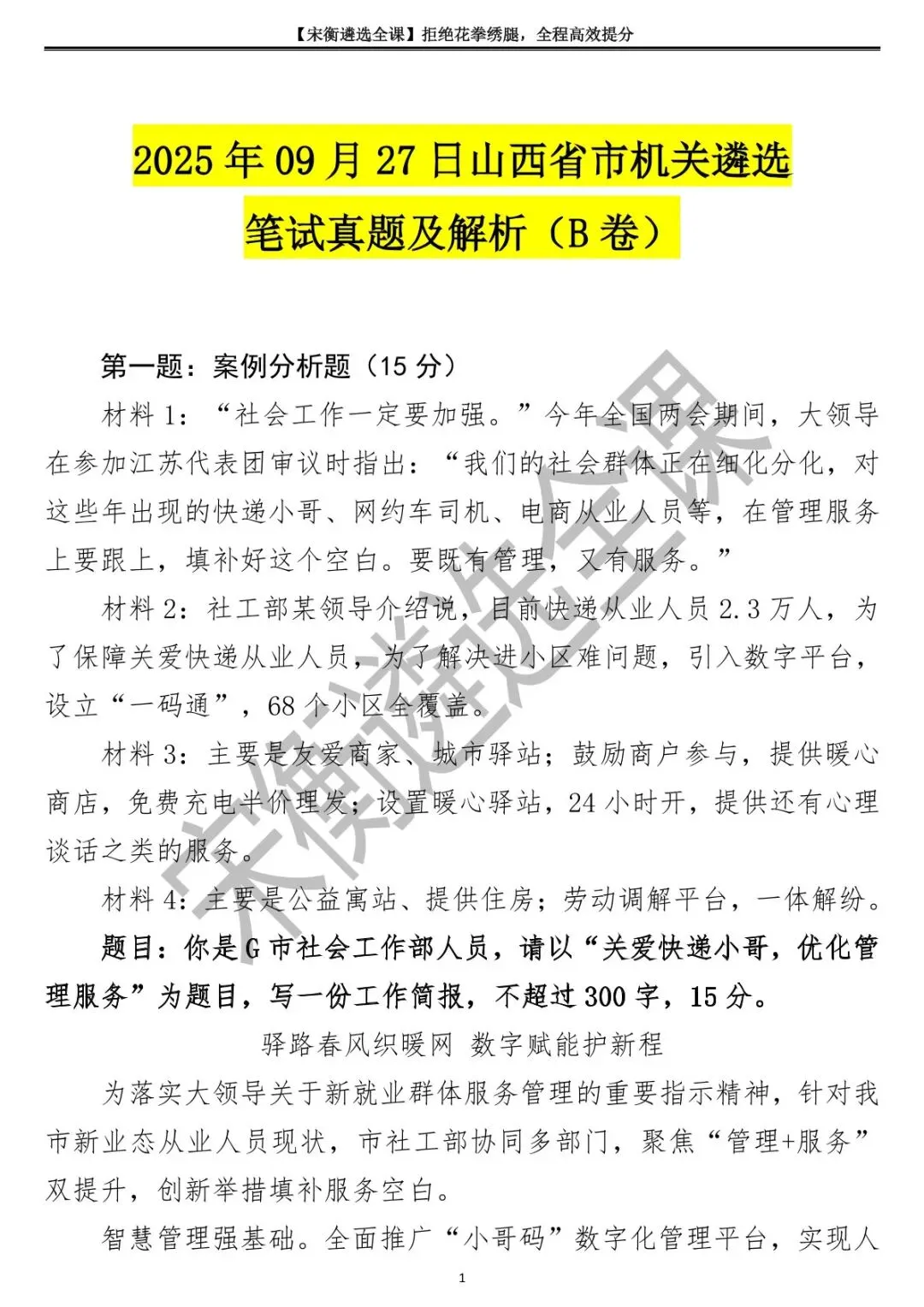 2025年09月27日山西省市机关遴选笔试真题及解析(B卷)