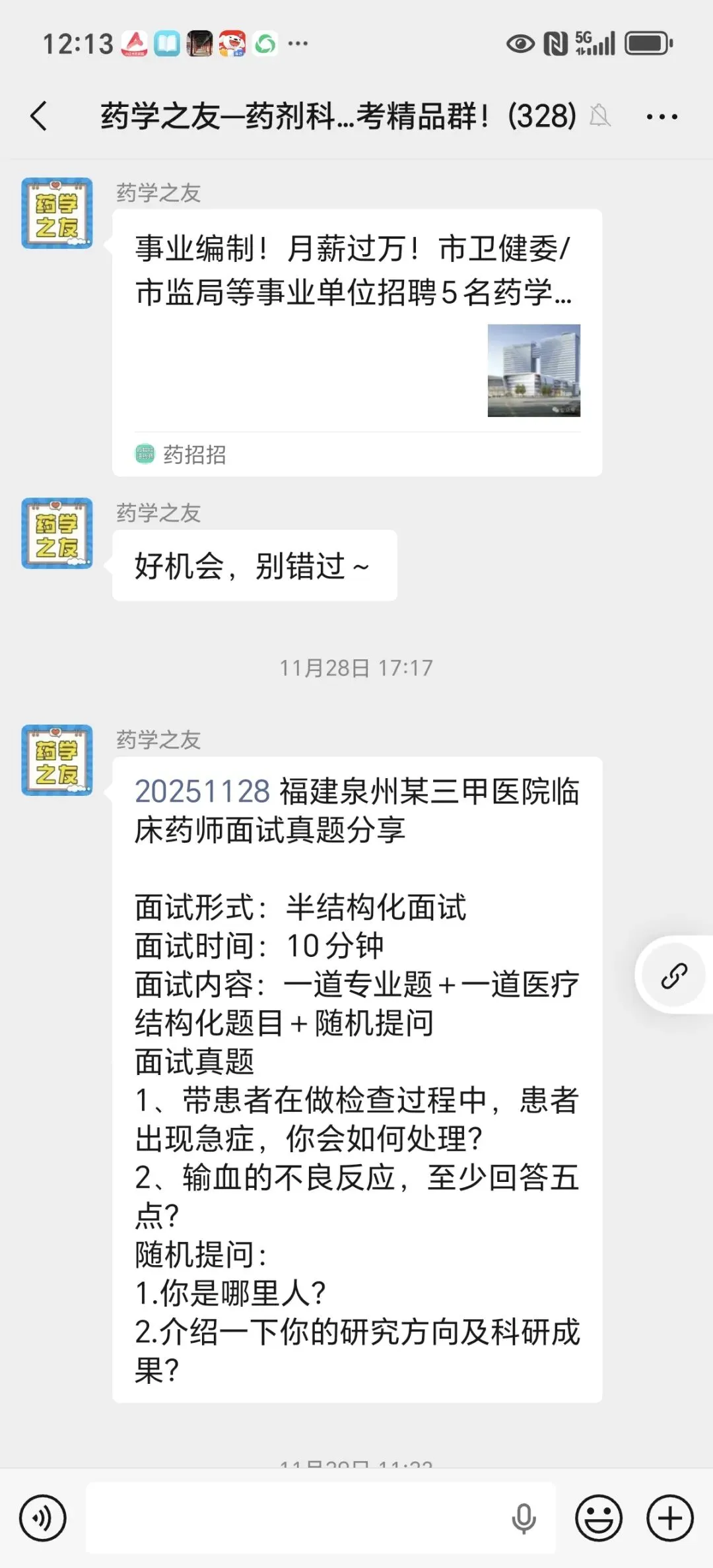 药学考医院就进药剂科备考精品群,群内都是志同道合的药友,群内既有药剂科笔试/面试真题,又有药剂科招聘信息!