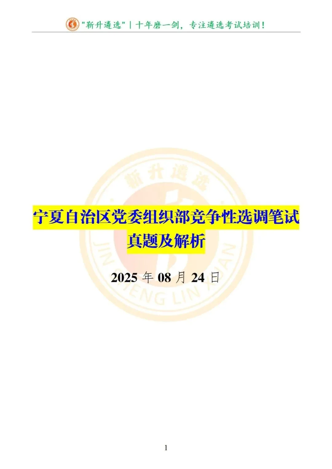 >真题分享|2025年08月24日|宁夏自治区党委组织部竞争性选调及解析