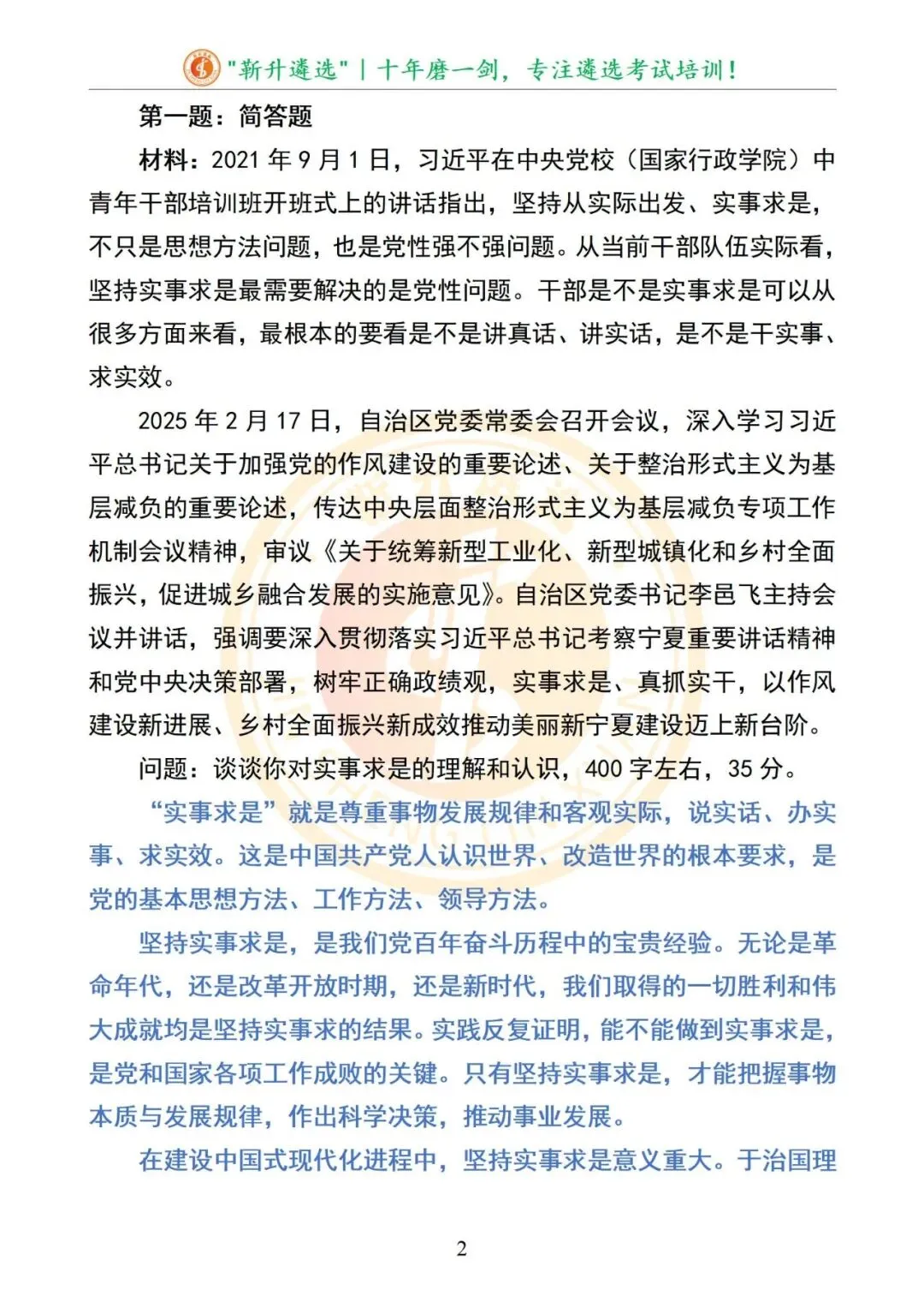真题分享|2025年08月24日|宁夏自治区党委组织部竞争性选调及解析