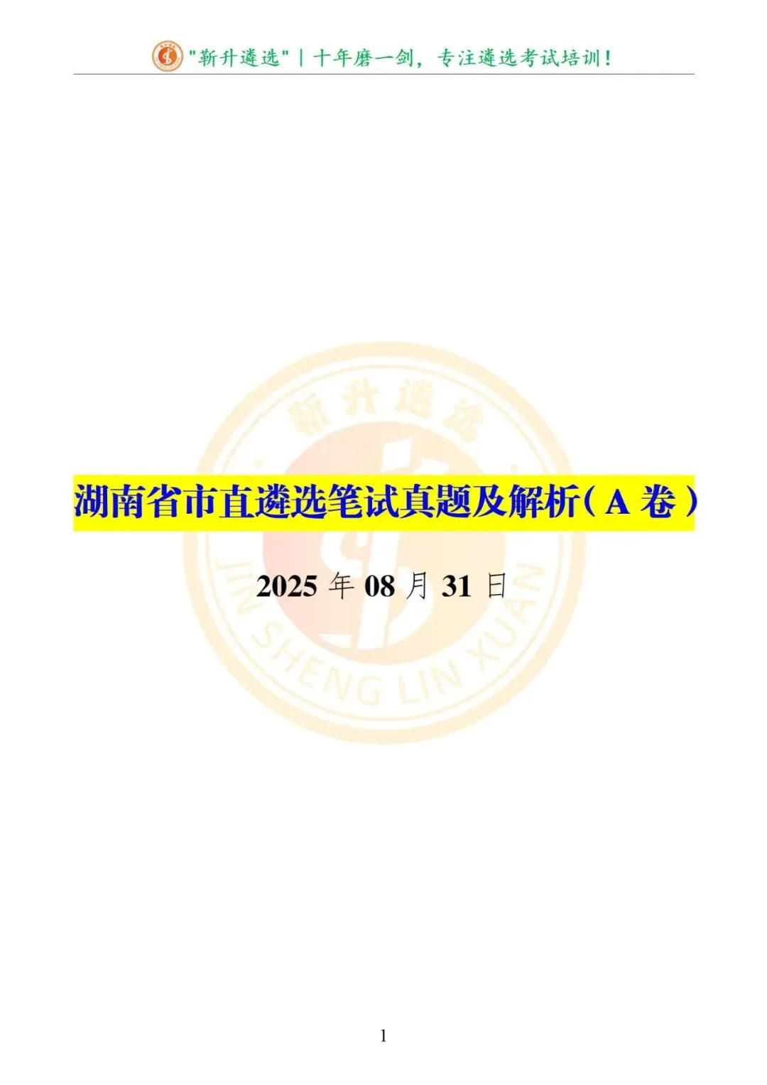 真题分享|2025年08月31日|湖南省市直遴选笔试真题及解析(A卷)