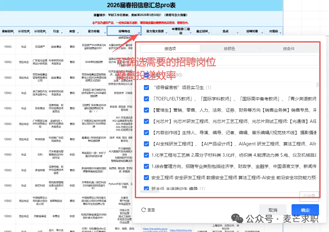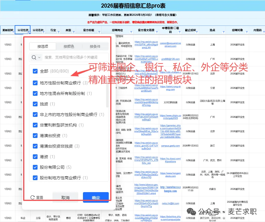 个性化筛选:所有信息均支持自主筛选,行业-企业-截止时间-投递链接-工作地点…,分门别类,一目了然,既能海投,又能精准投递