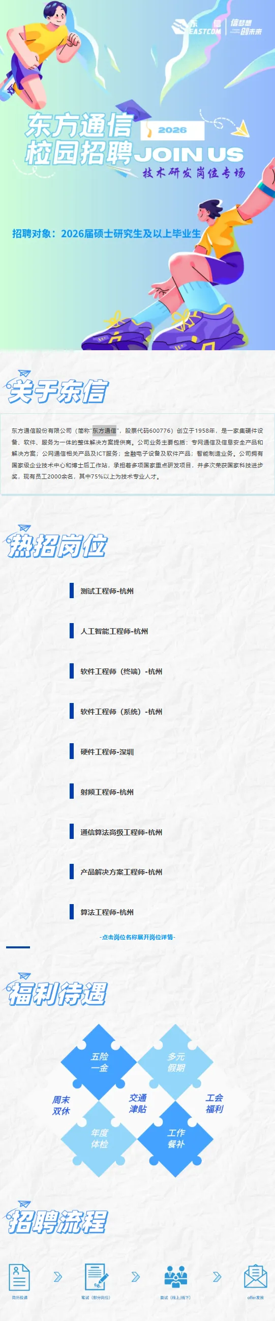 当前位置:首页>应届生招聘>东方通信2026届春季校园招聘启动!