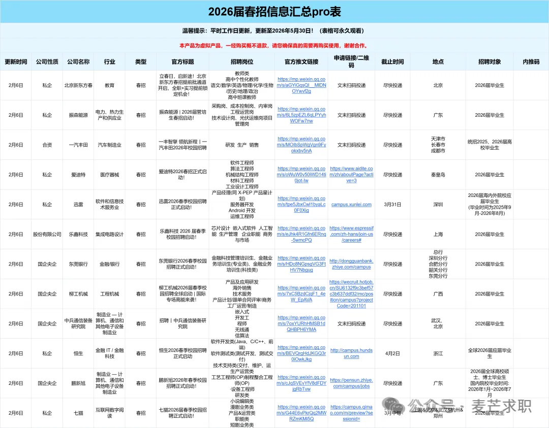 「2026届春招信息PRO表」