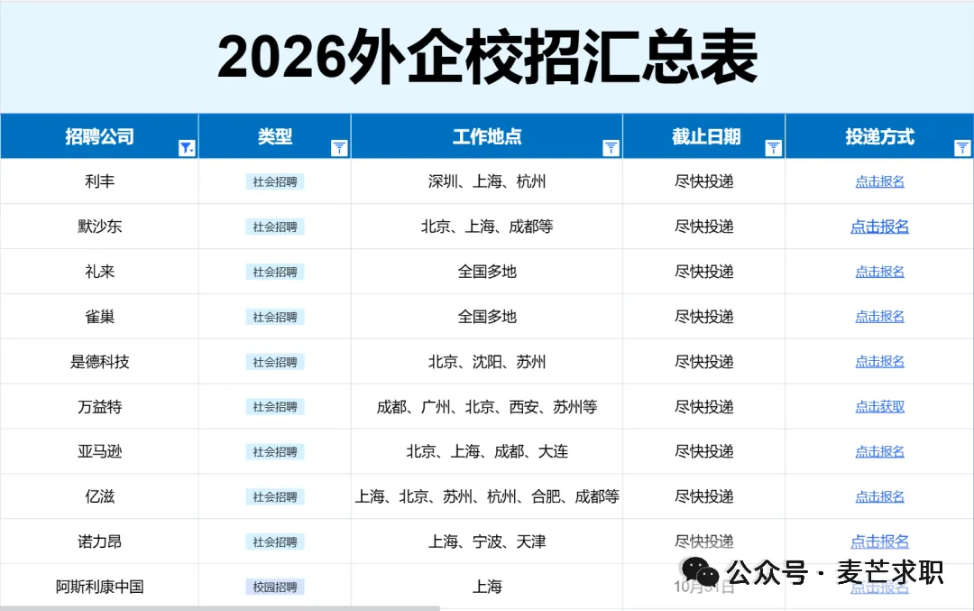 此表格包含了当前的秋招补录+春招信息