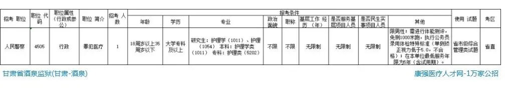 当前位置:首页>应届生招聘>【应届生】甘肃省酒泉监狱招聘公告,大专起
