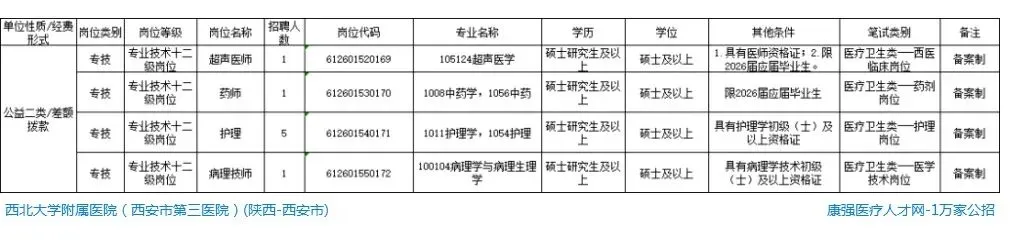 【应届生】西北大学附属医院招聘公告,公立三甲,硕士起,招8人