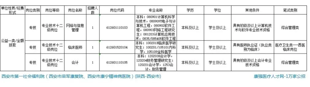 【应届生】西安市第—社会福利院招聘公告,本科起,招3人