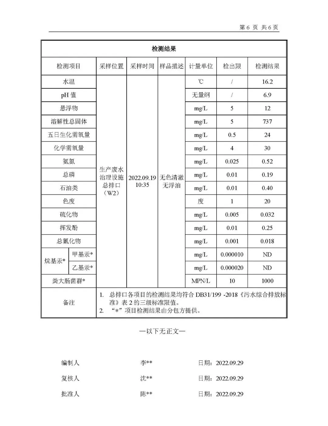 | 被测单位为造纸厂,挥发酚是特征污染物,进水口 ND而总排口 | |
