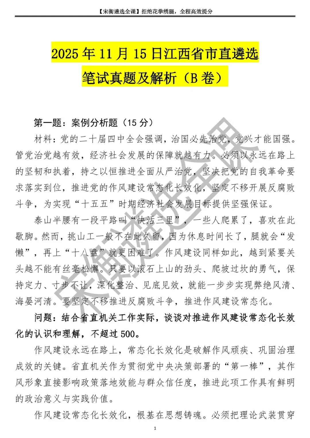 真题分享|2025年11月15日|江西省市直遴选笔试真题及解析(A卷)