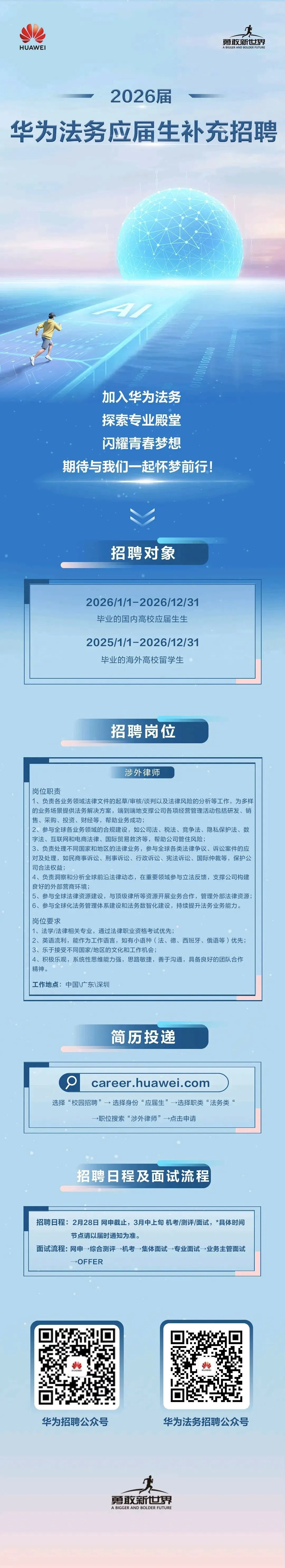 >校园招聘|华为法务2026届应届生补充招聘启动