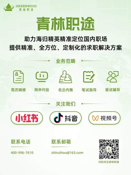 有求职辅导需求的留学生,也可以咨询青林职途,帮你一键锁定适合你的名企offer!