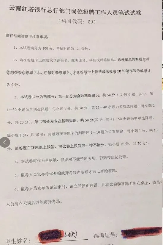 1. 云南红塔银行笔试:
