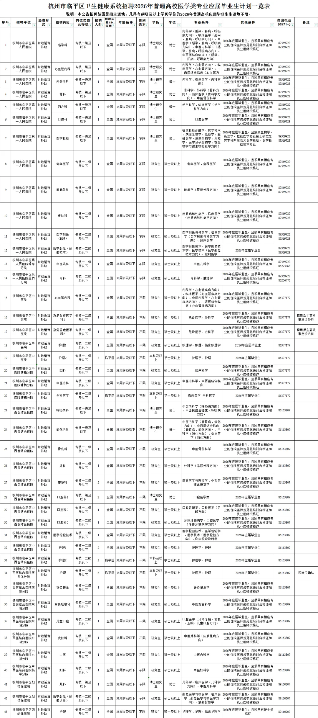 杭州市临平区卫生健康系统招聘2026年普通高校医学类专业应届毕业生公告 | ||||