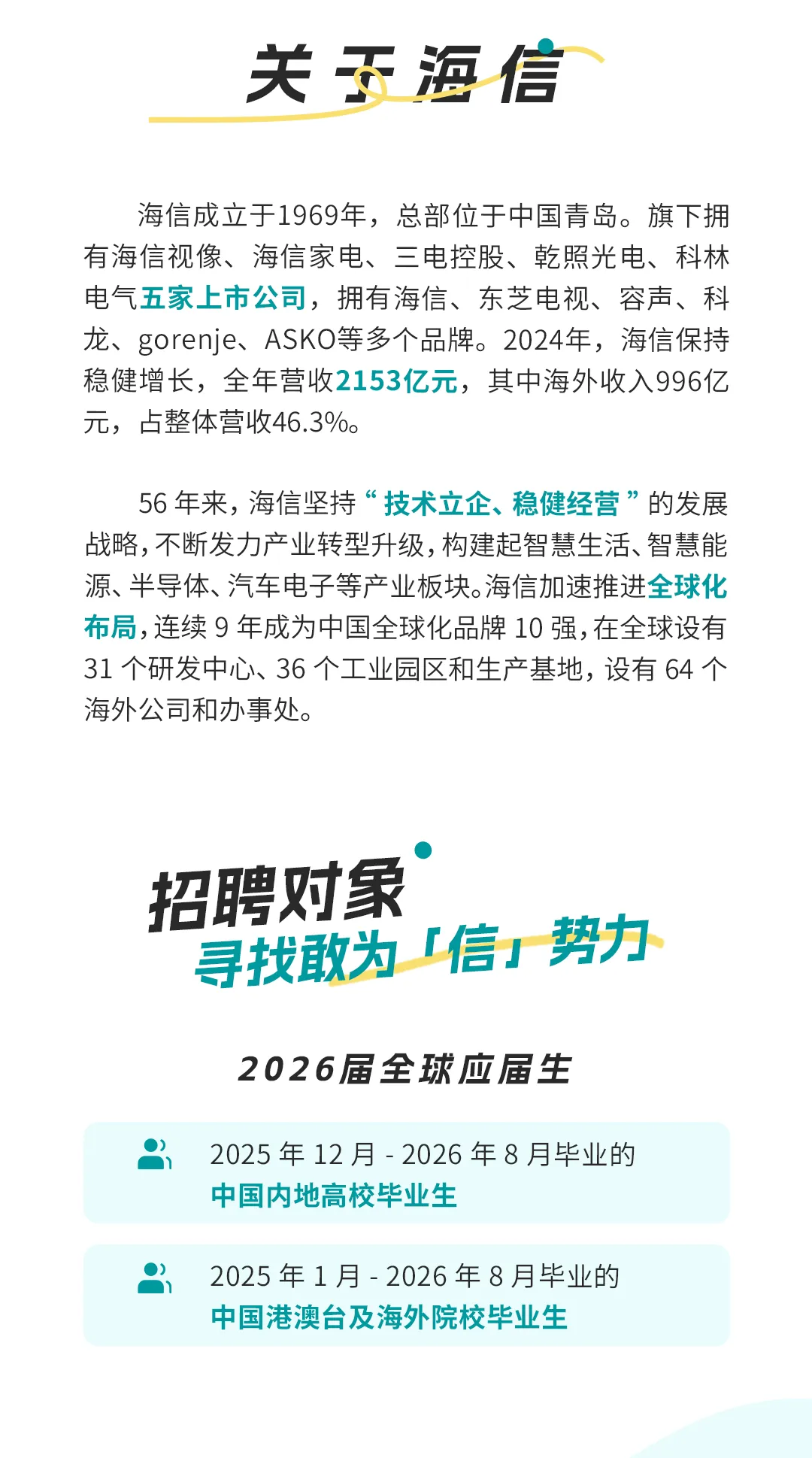 【校园招聘】海信集团2026届全球校园招聘正式启动!