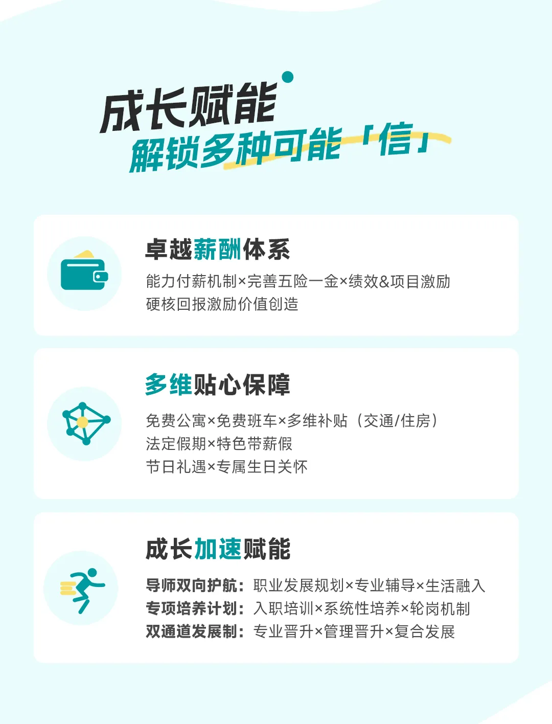 免费公寓x免费班车x多维补贴(交通/住房)法定假期x特色带薪假节日礼遇x专属生日关怀