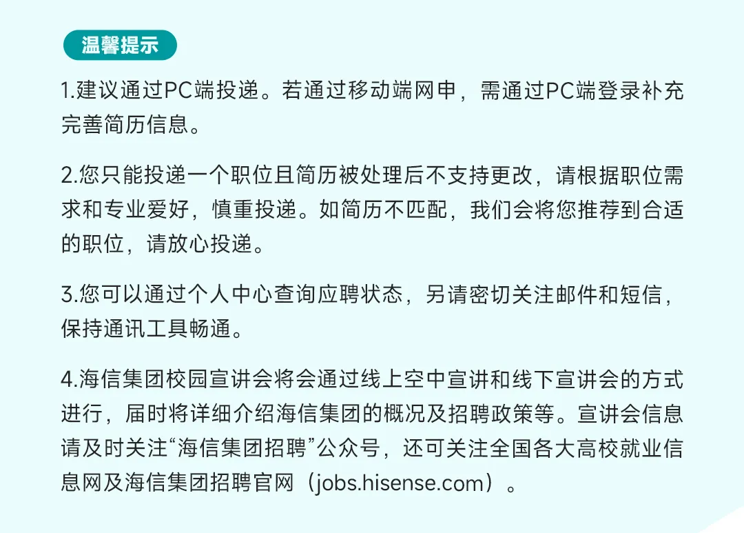 PC端投递:jobs.hisense.com
