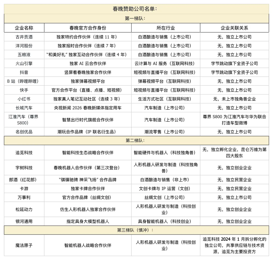 《春晚赞助公司名单》