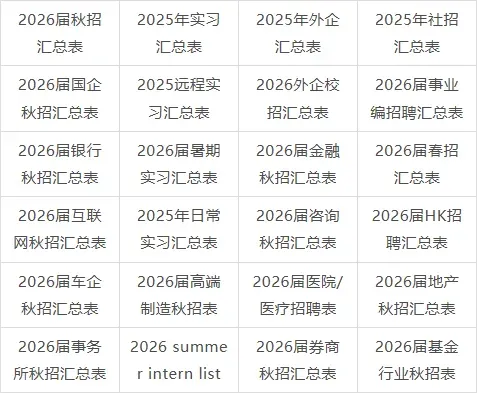 秋招汇总表、社招汇总表、实习汇总表