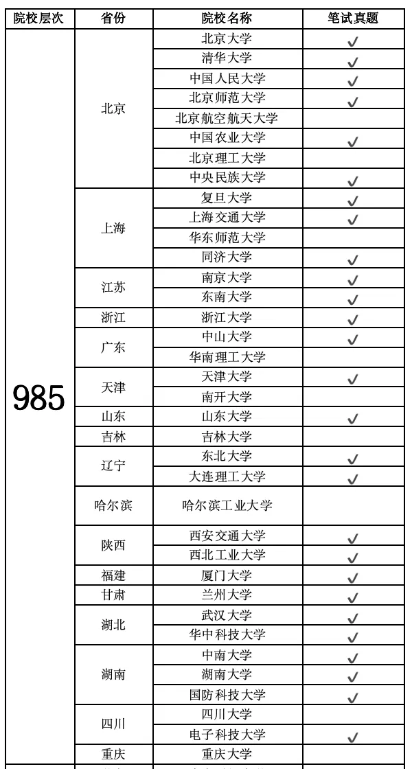 👇表格中“打✅”的表示有该所高校的笔试真题👀