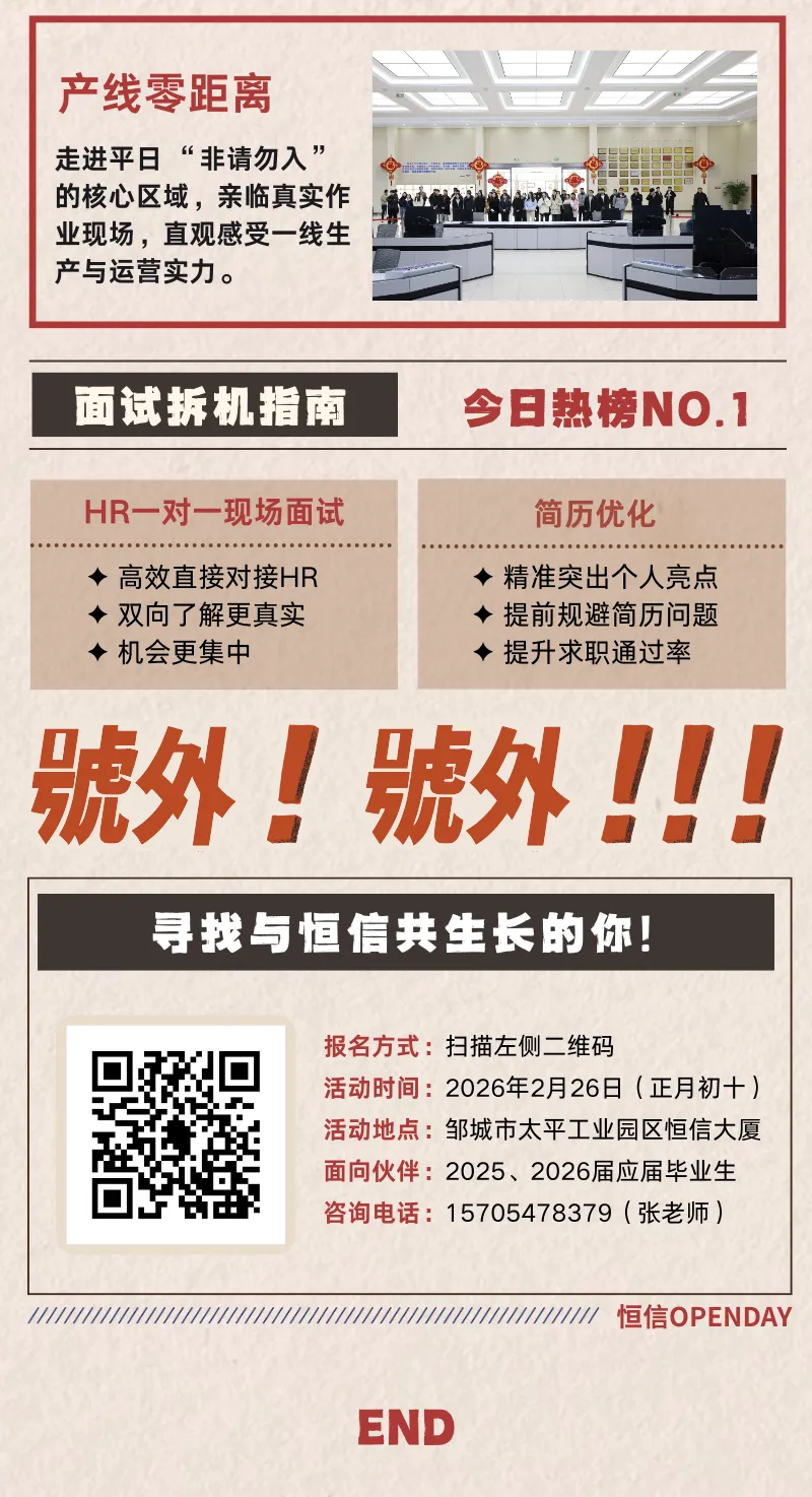 查看更多招聘关注公众号:邹城人才网