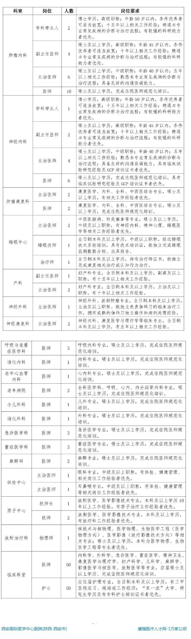 因工作需要,现需招聘医疗116人,护理50人,医技6人。详见下表: