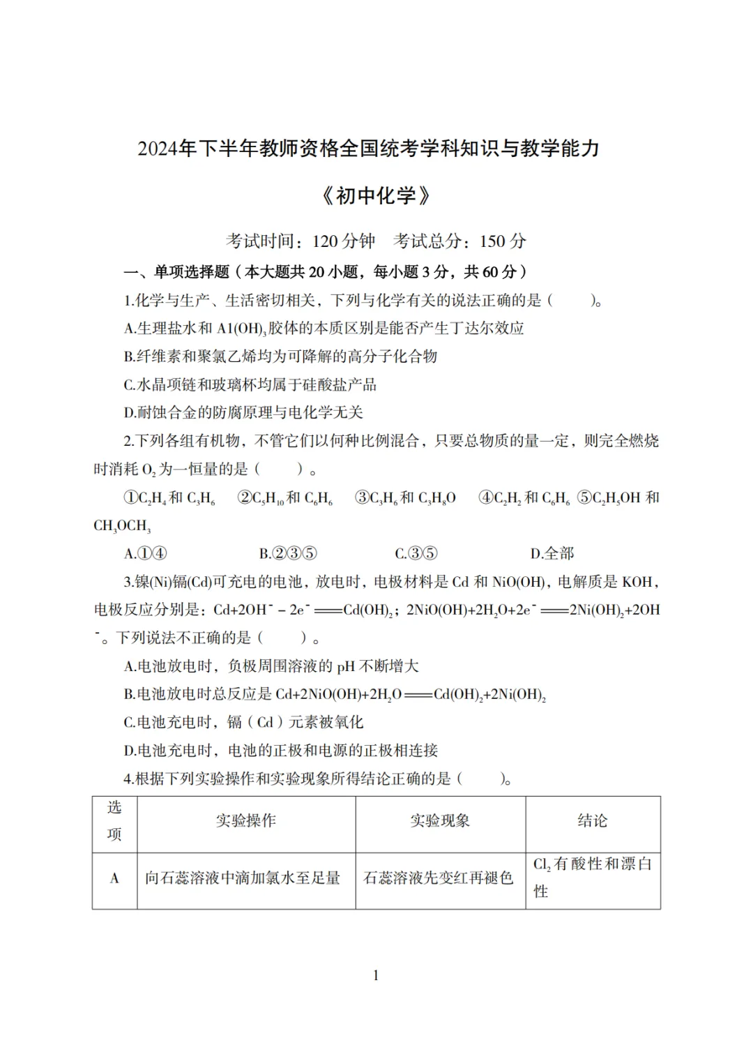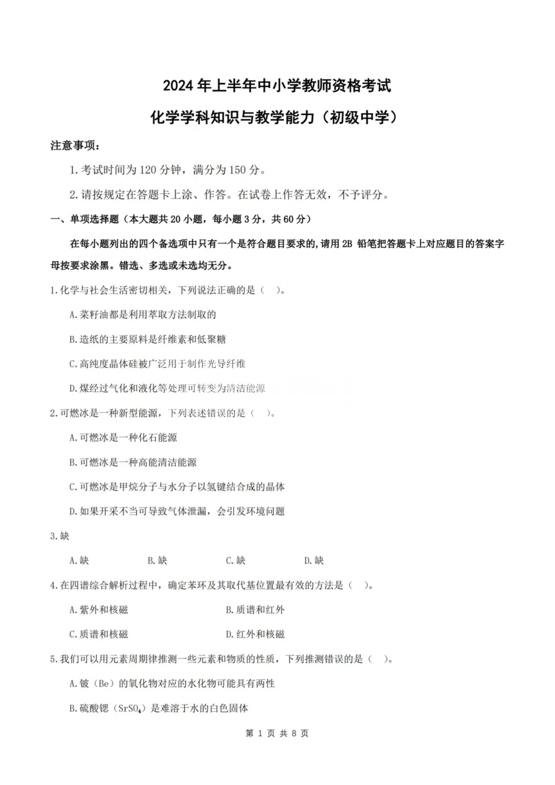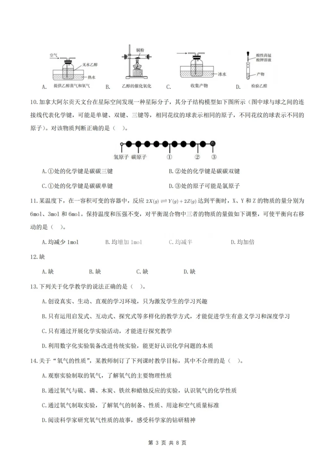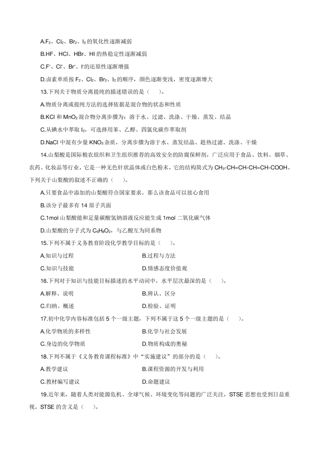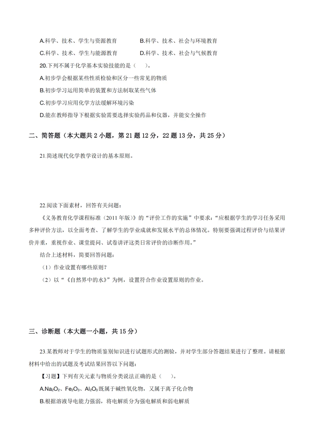 以上就是教资笔试科三初中化学历年真题试卷含对应的答案解析,考试复习当中,刷真题是必须要进行的一项,因为通过历年真题可以了解自己所考科目的内容以及考点题型