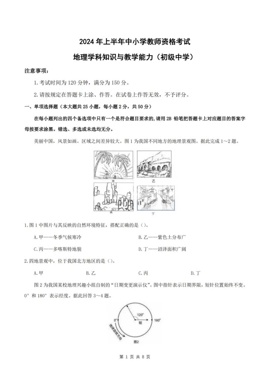 以上就是教资笔试科三初中地理历年真题试卷含对应的答案解析,考试复习当中,刷真题是必须要进行的一项,因为通过历年真题可以了解自己所考科目的内容以及考点题型