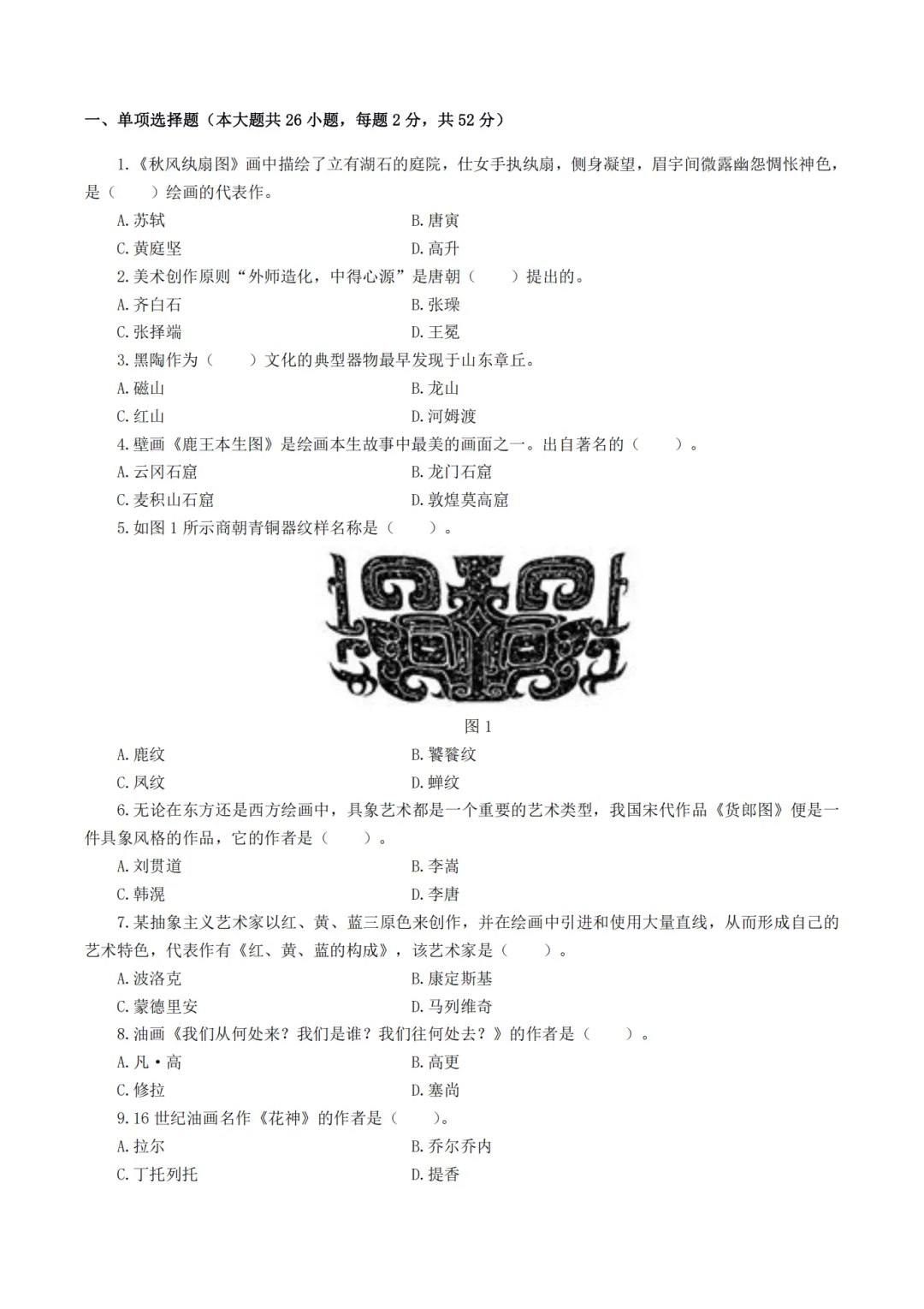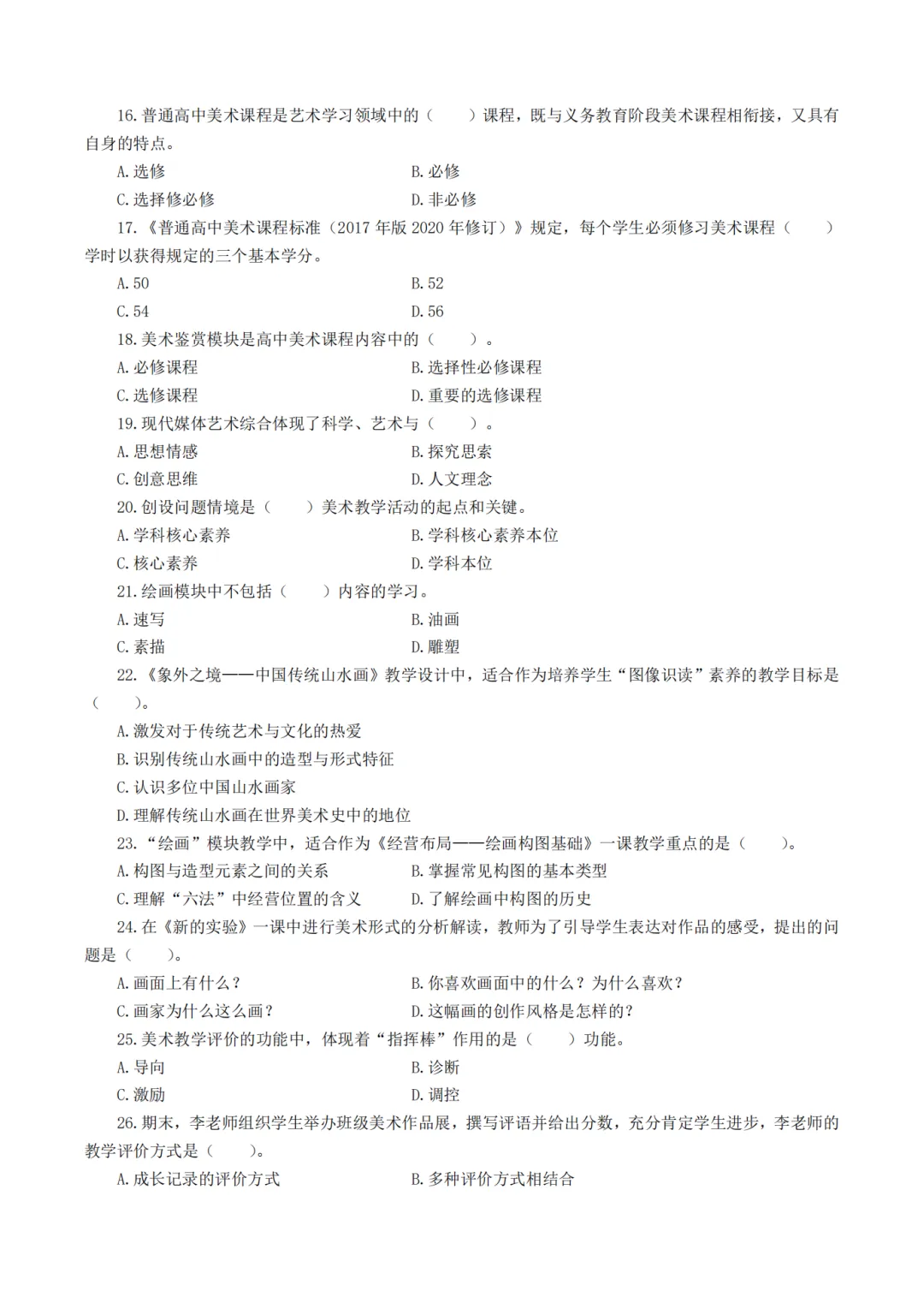 以上就是教资笔试科三高中美术历年真题试卷含对应的答案解析,考试复习当中,刷真题是必须要进行的一项,因为通过历年真题可以了解自己所考科目的内容以及考点题型