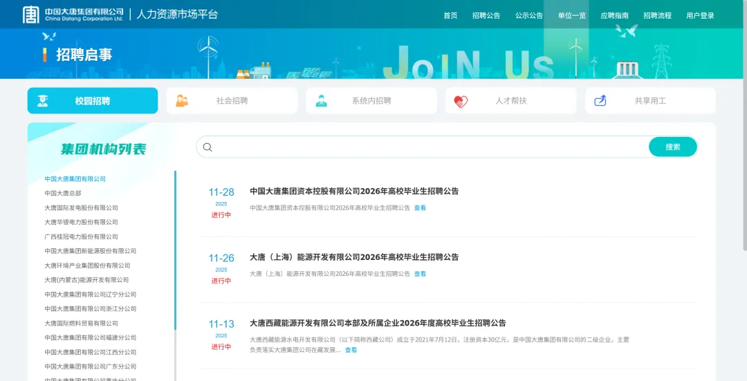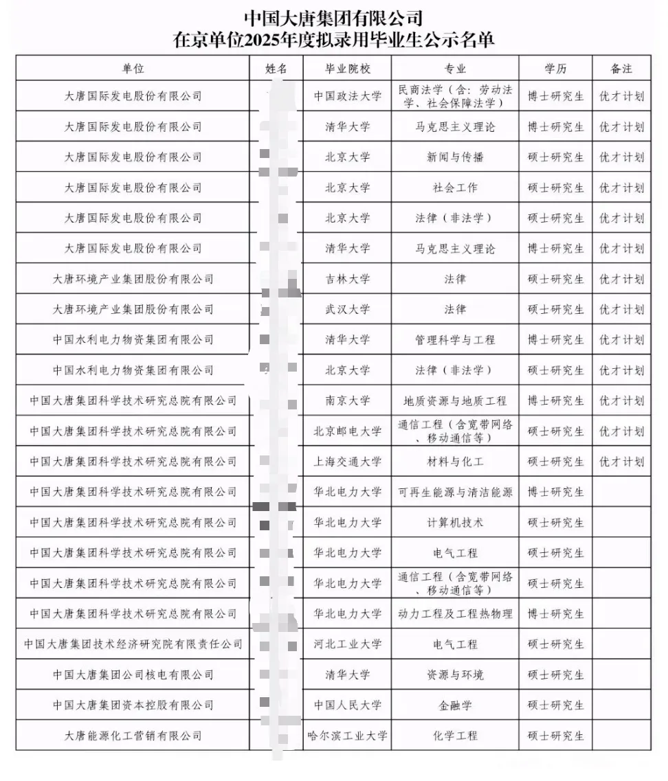 https://zhaopin.china-cdt.com/zpgg_index.html大唐集团子公司众多,下面主要通过大唐集团在京单位和大唐云南地区2025年录取名单公示来为大家进行分析。