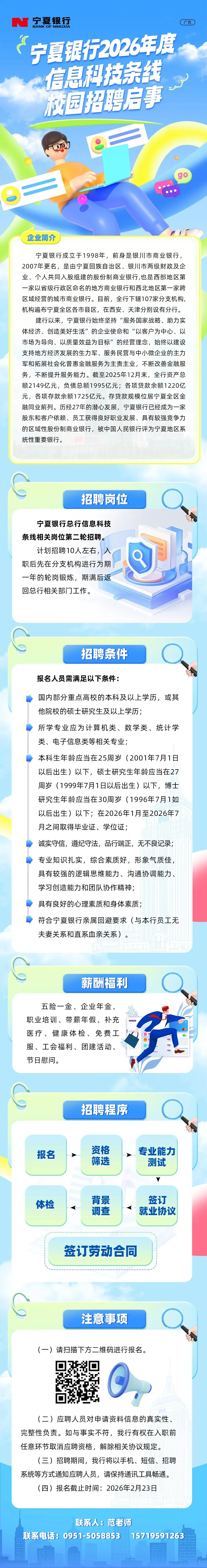 当前位置:首页>应届生招聘>宁夏银行2026年度信息科技条线校园招聘启事