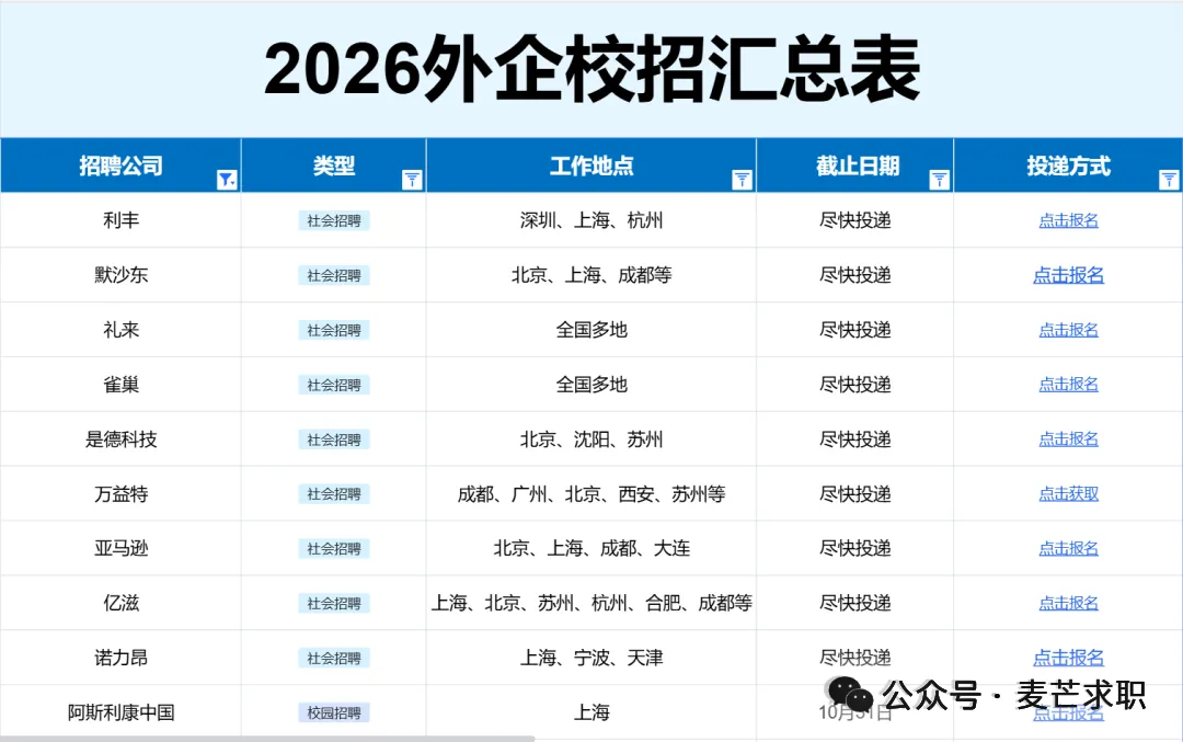 不知道都有哪些企业开放春招,