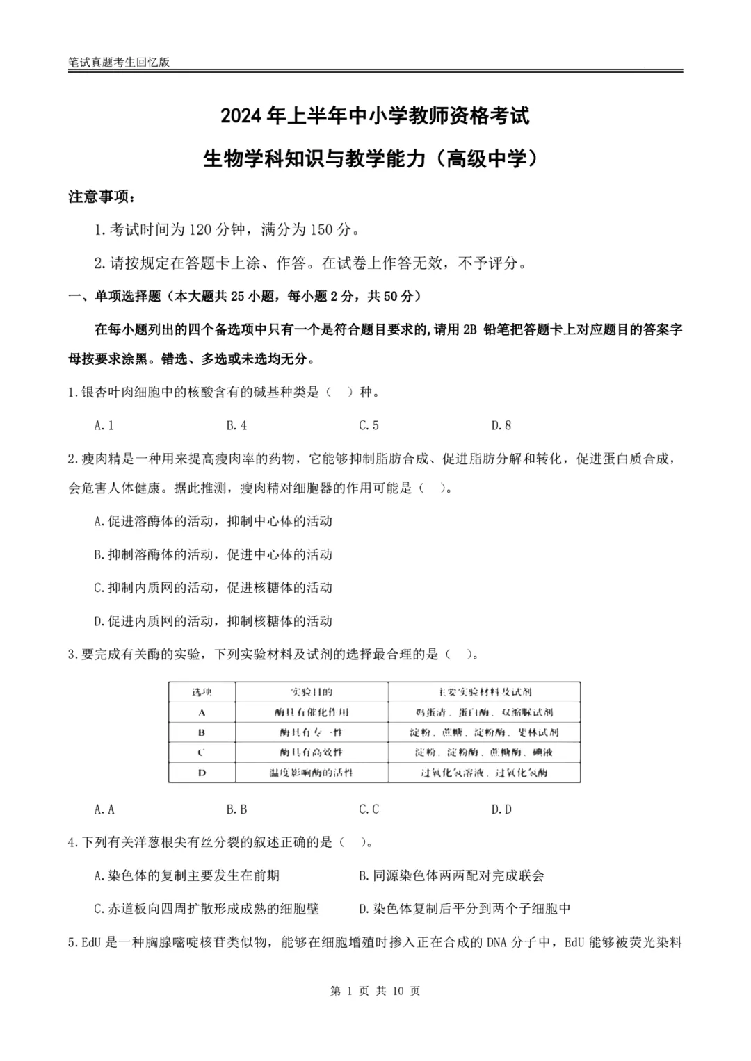 以上就是教资笔试科三高中生物历年真题试卷含对应的答案解析,考试复习当中,刷真题是必须要进行的一项,因为通过历年真题可以了解自己所考科目的内容以及考点题型