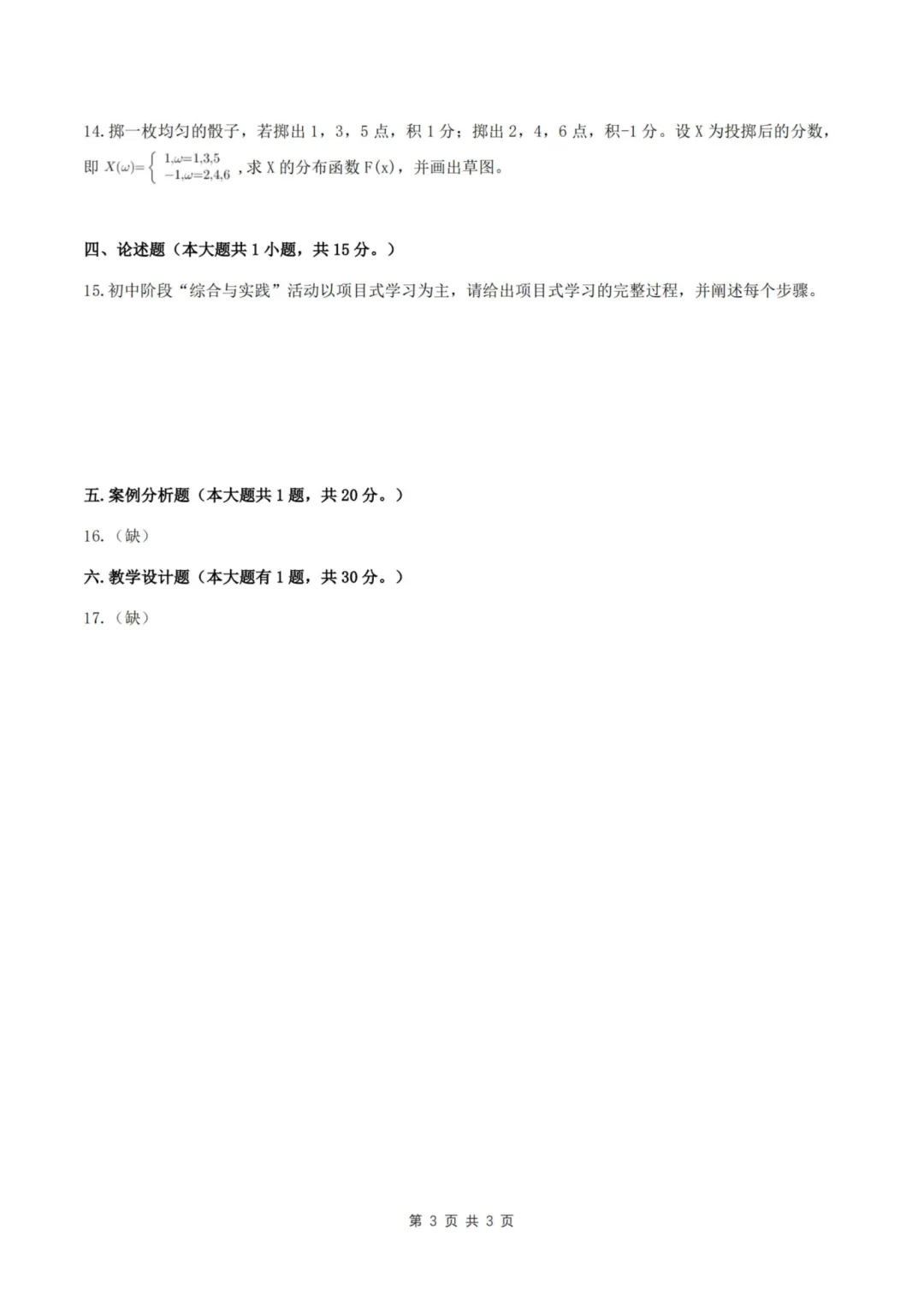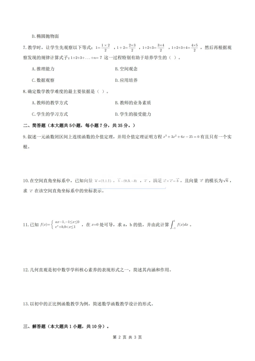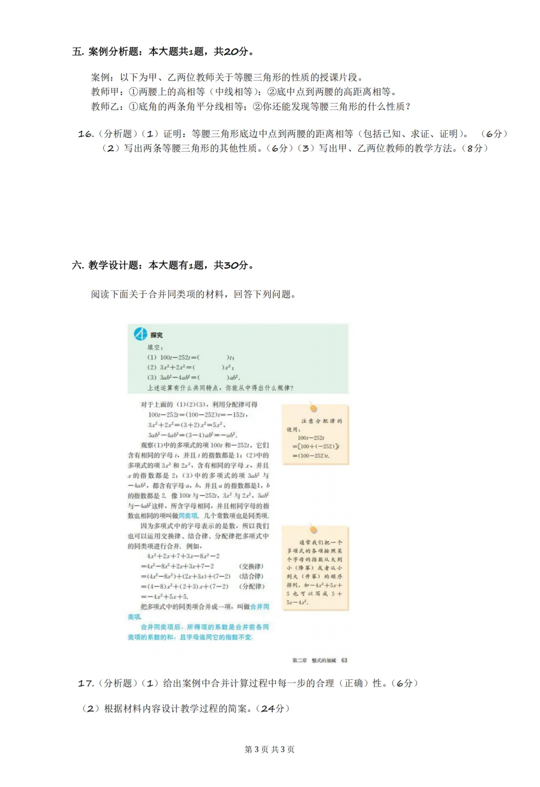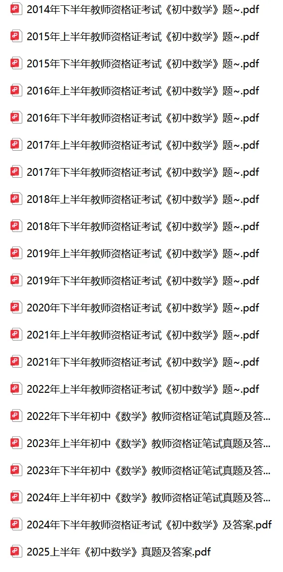 以上就是教资笔试科三初中数学历年真题试卷含对应的答案解析,考试复习当中,刷真题是必须要进行的一项,因为通过历年真题可以了解自己所考科目的内容以及考点题型