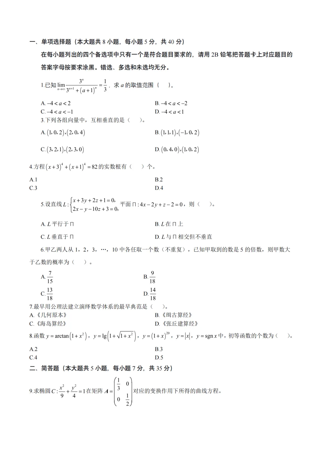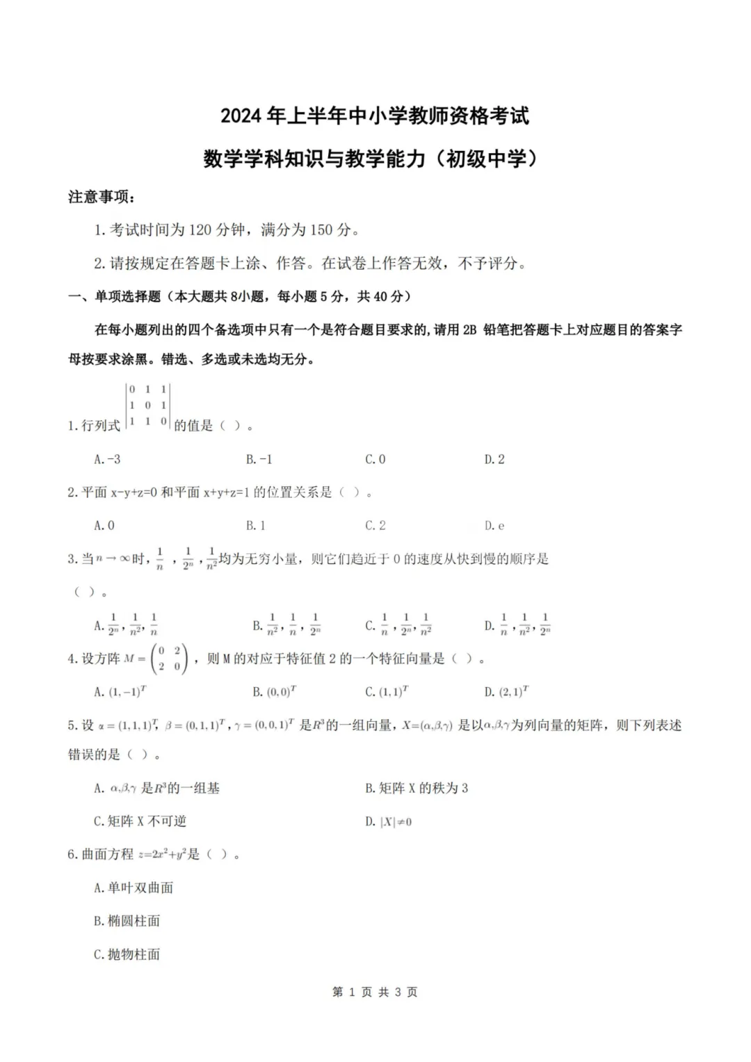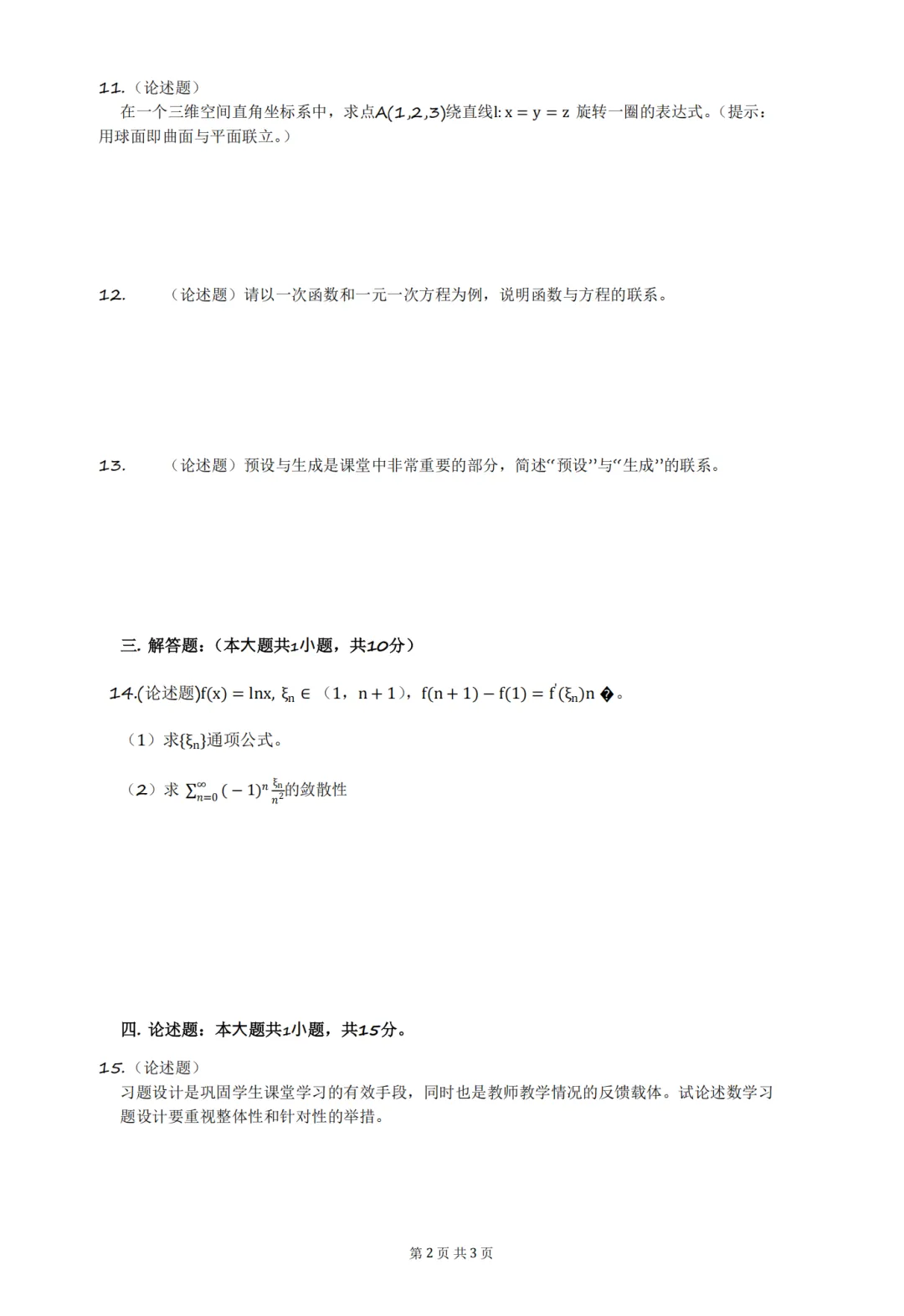 以上就是教资笔试科三初中数学历年真题试卷含对应的答案解析,考试复习当中,刷真题是必须要进行的一项,因为通过历年真题可以了解自己所考科目的内容以及考点题型