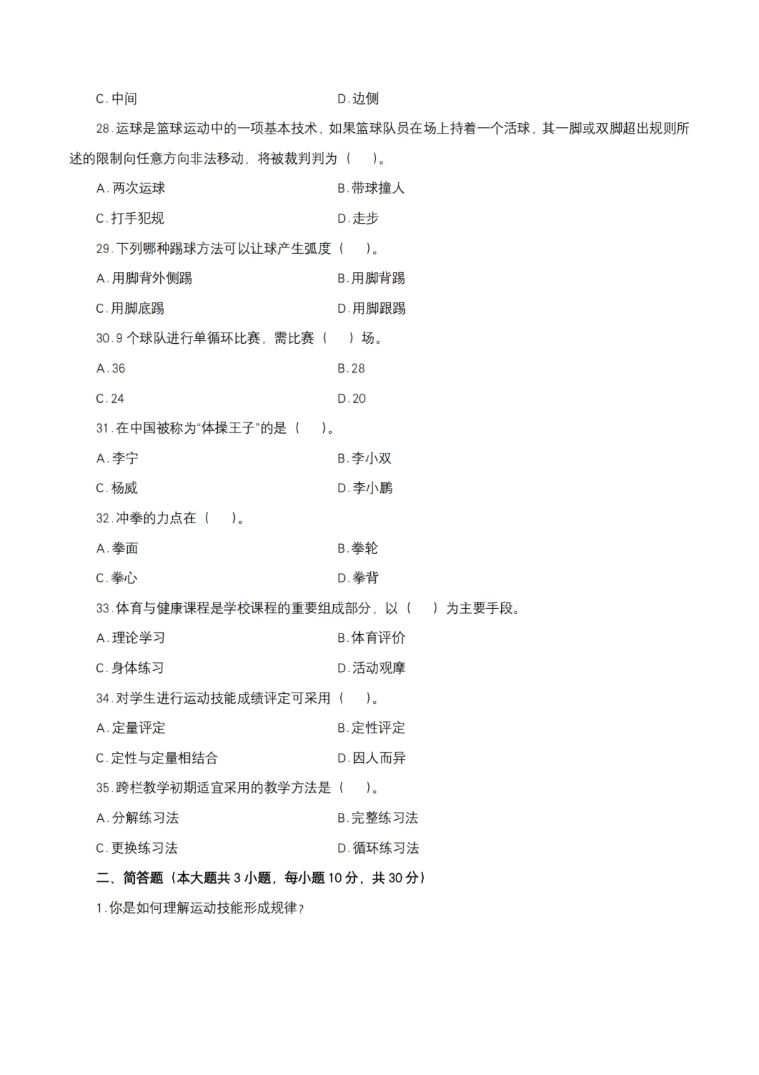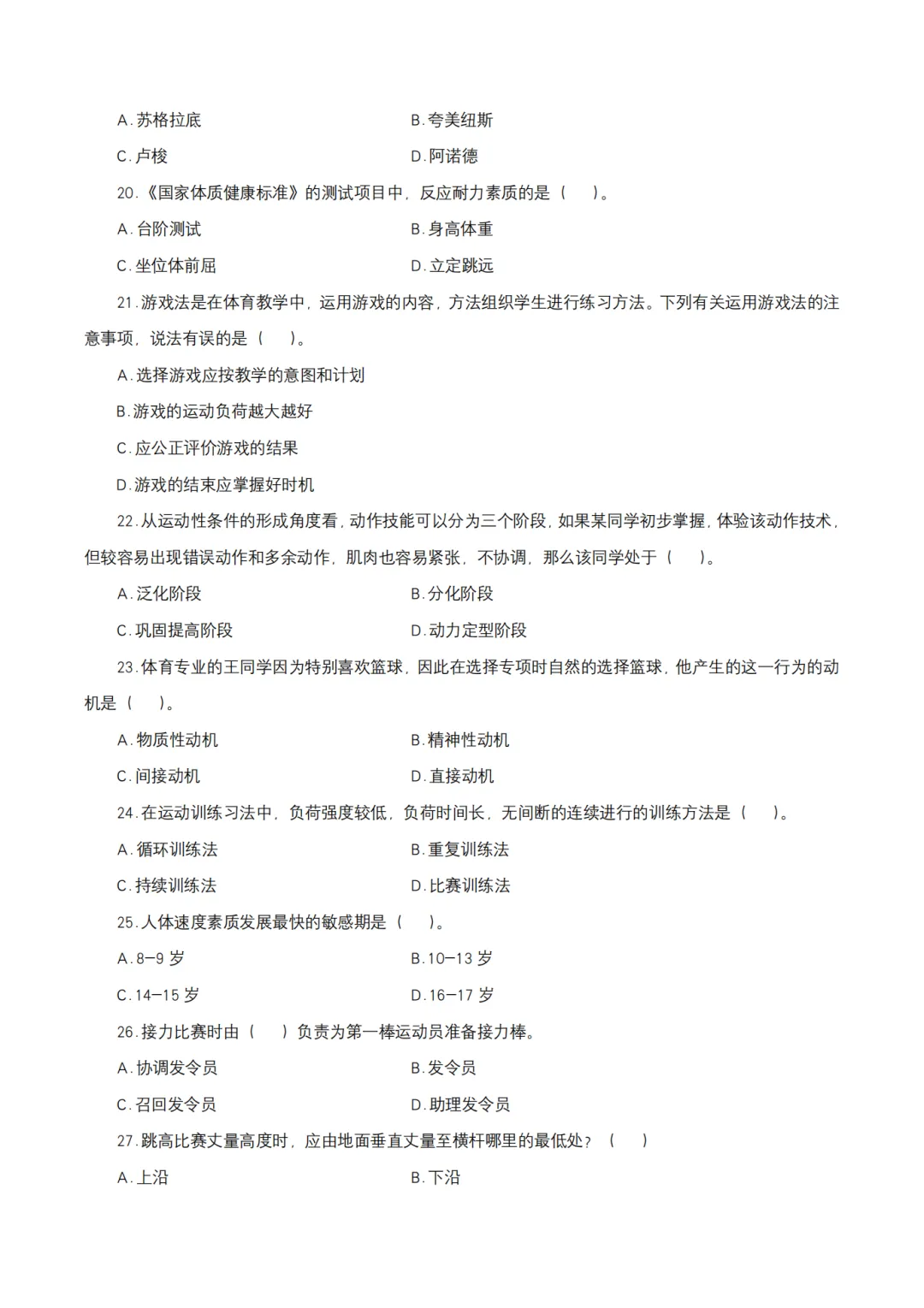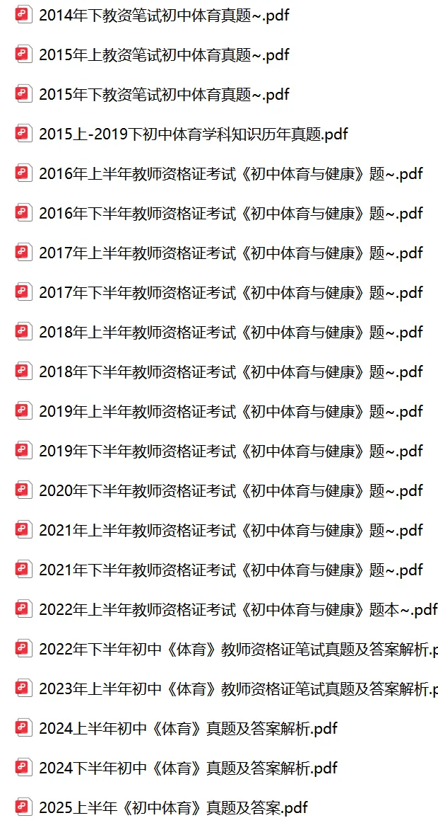 以上就是教资笔试科三初中体育历年真题试卷含对应的答案解析,考试复习当中,刷真题是必须要进行的一项,因为通过历年真题可以了解自己所考科目的内容以及考点题型