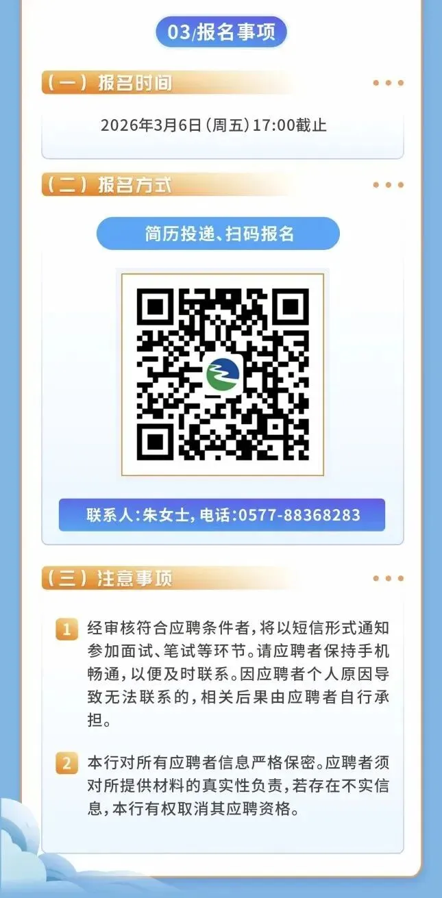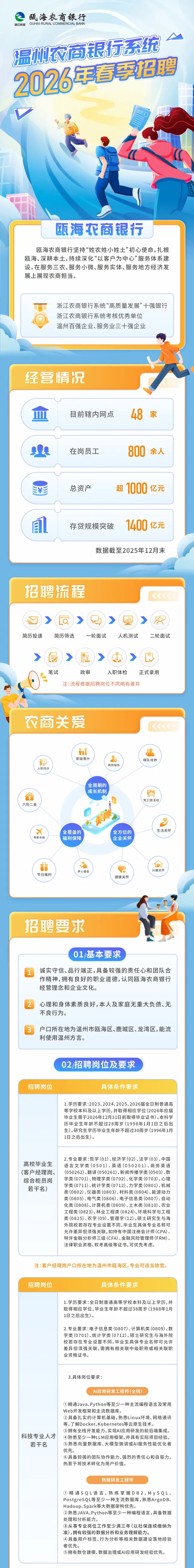 国企 | 瓯海农商银行2026春季校园招聘•面向23-26届应届生