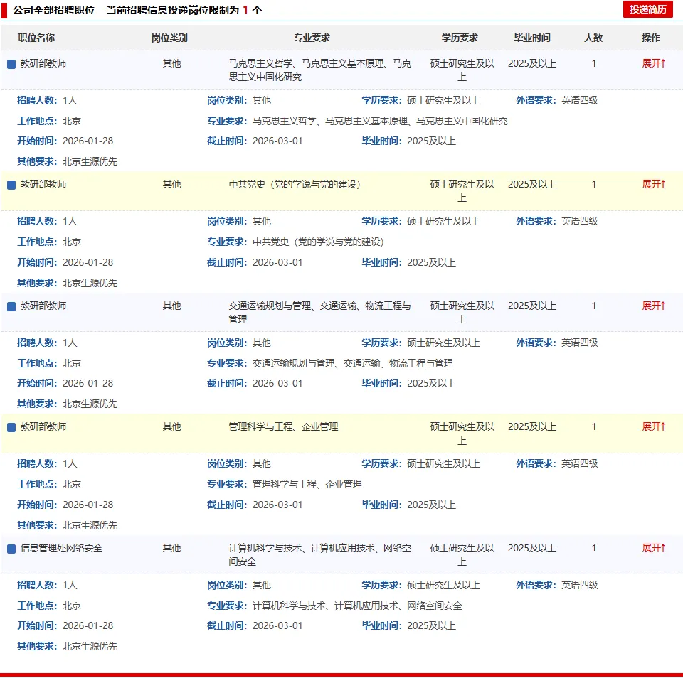 此次计划招聘硕士研究生及以上学历毕业生5名,事业单位编制,工作地点北京。招聘岗位信息详见附表。