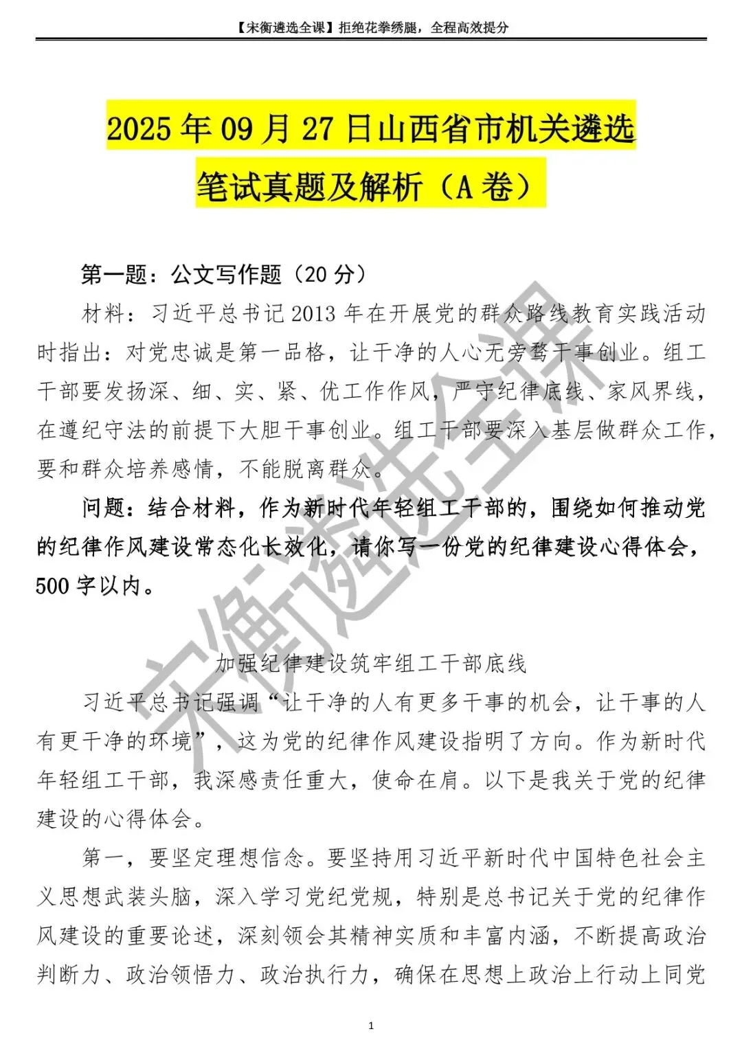 >2025年09月27日山西省市机关遴选笔试真题及解析(A卷)