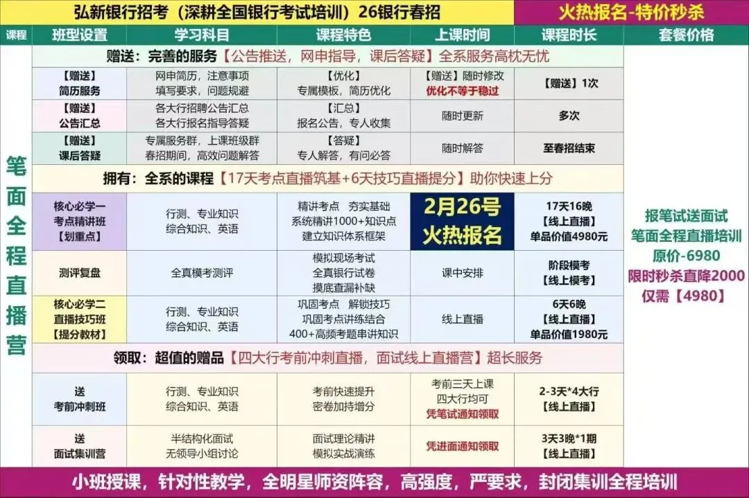 弘新教育专业银行培训十余年,帮助数十万学生银行就业,