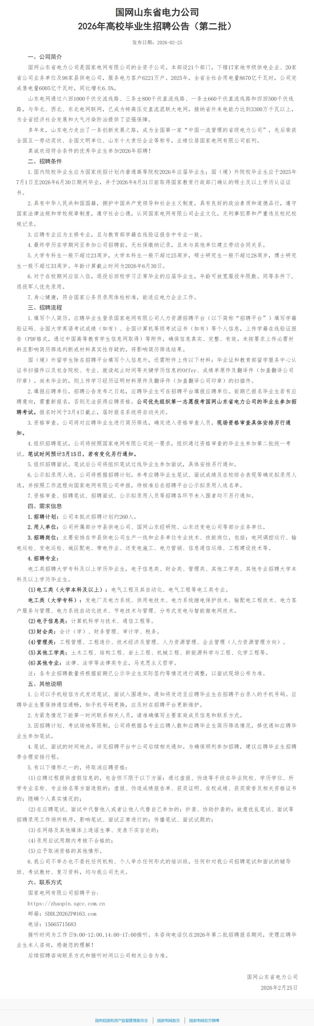 >央企 | 国网山东电力公司2026年校园招聘(第二批)•面向26届应届生