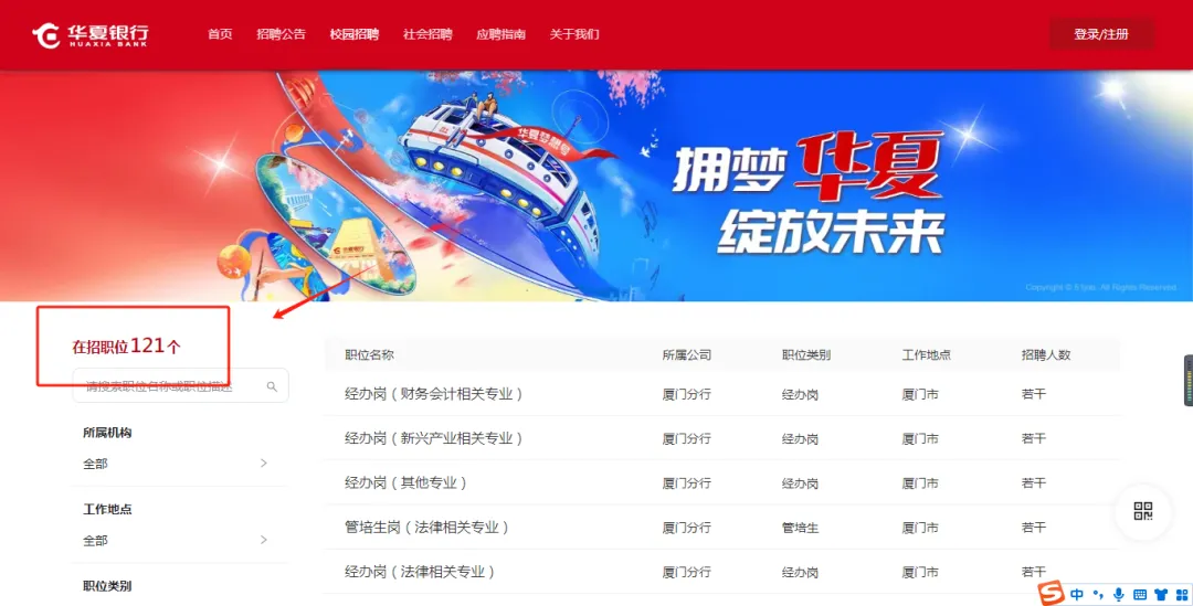 重要提醒:华夏银行目前官网已出职位较少,系统暂不稳定,截止时间也暂未出来,可以等两天再进行投递~