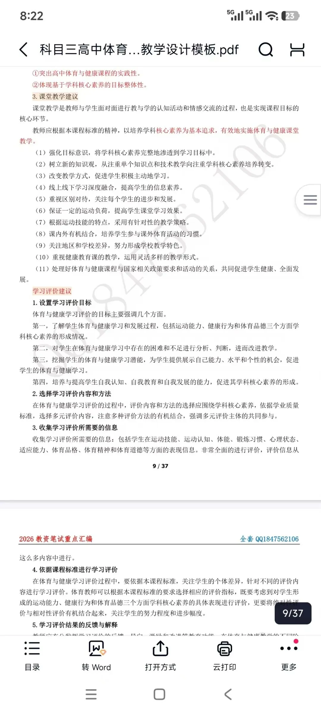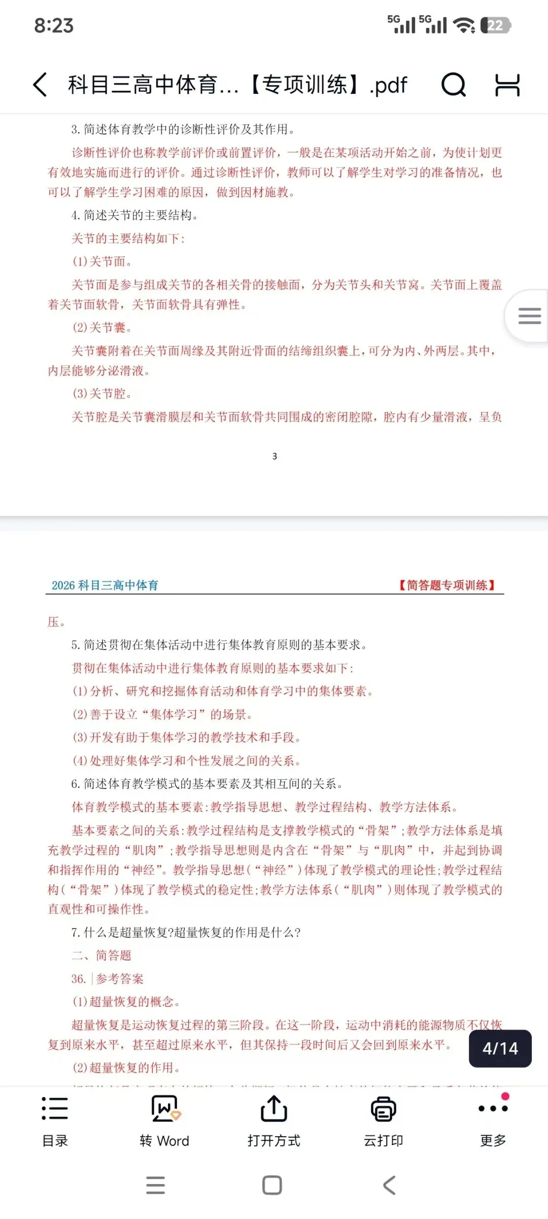 教资笔试科目三高中体育简答题汇总,主观题专项+教学设计模板