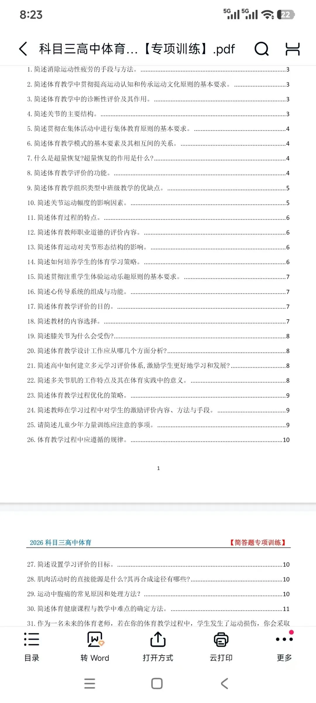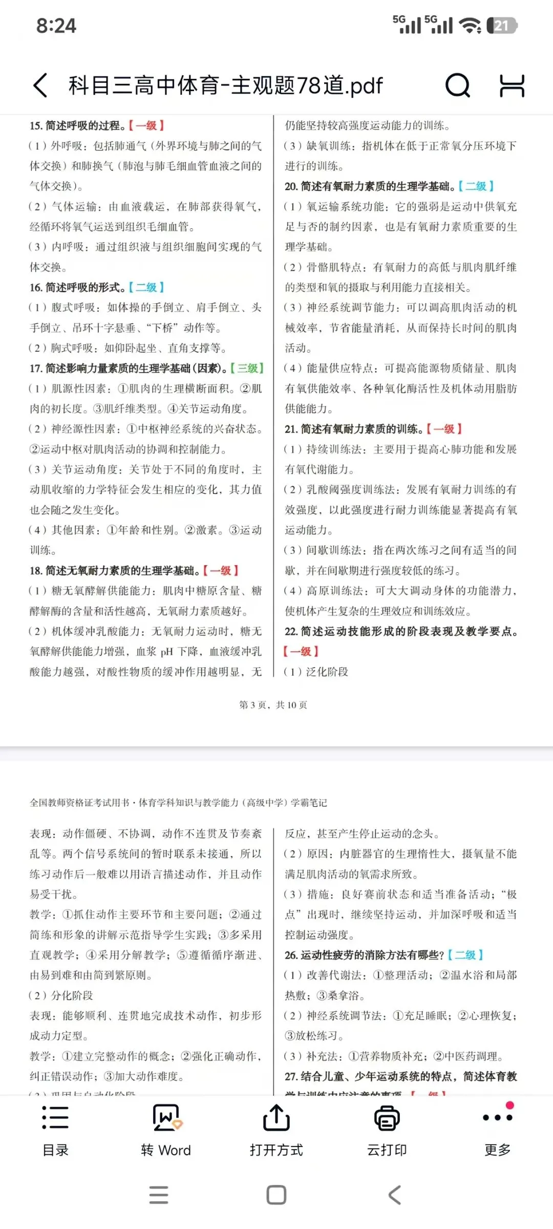 教资笔试科目三高中体育简答题汇总,主观题专项+教学设计模板+历年