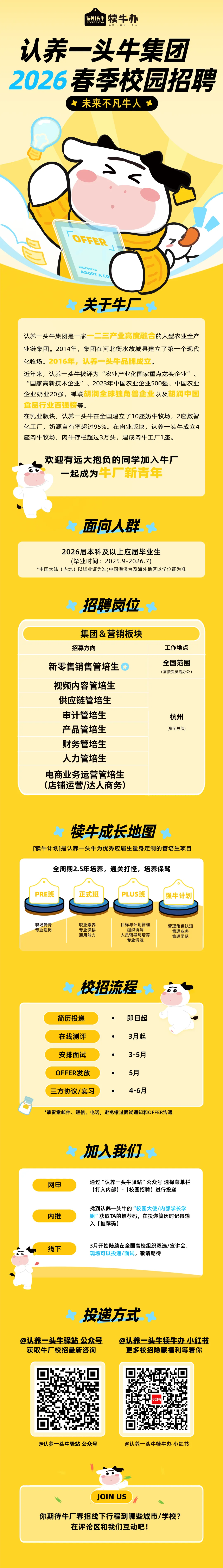 当前位置:首页>应届生招聘>春招丨应届生·认养一头牛集团2026届春季校园招聘正式启动!(文末有惊喜)
